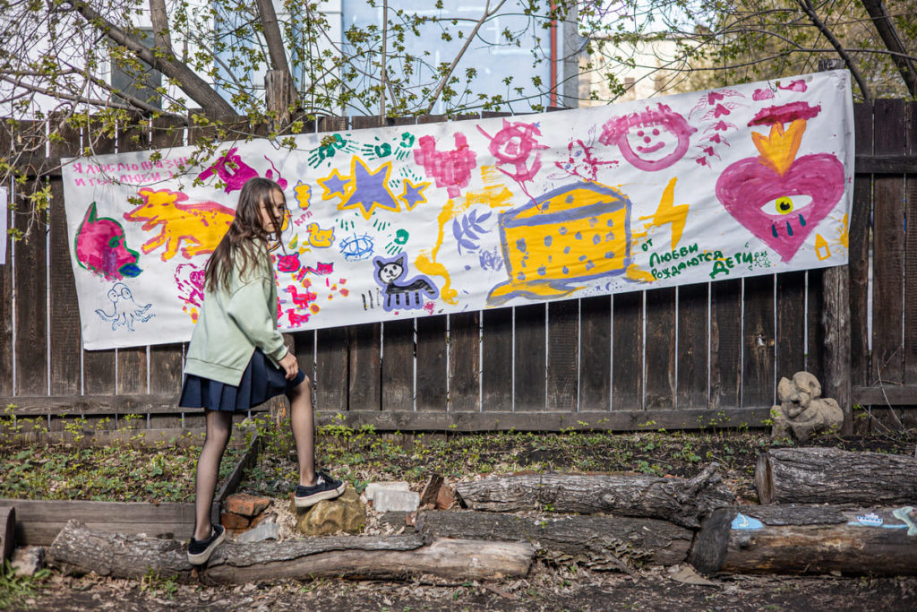 Участники фестиваля «Ненасильственные формы» в Иркутске рисовали картины, украшали забор и клеили звёзды на лоб