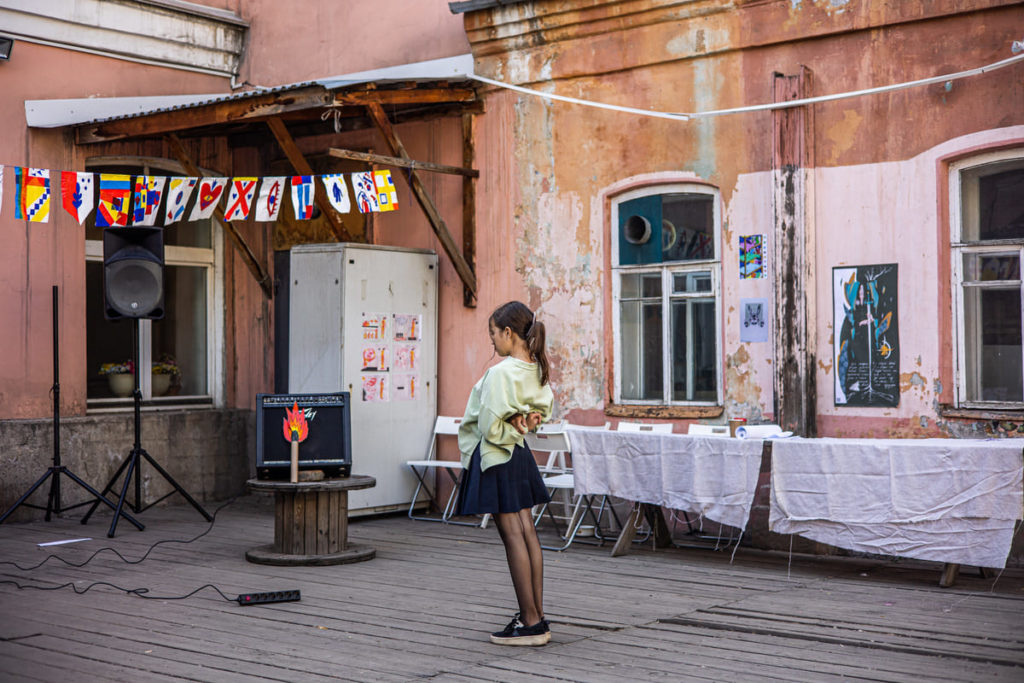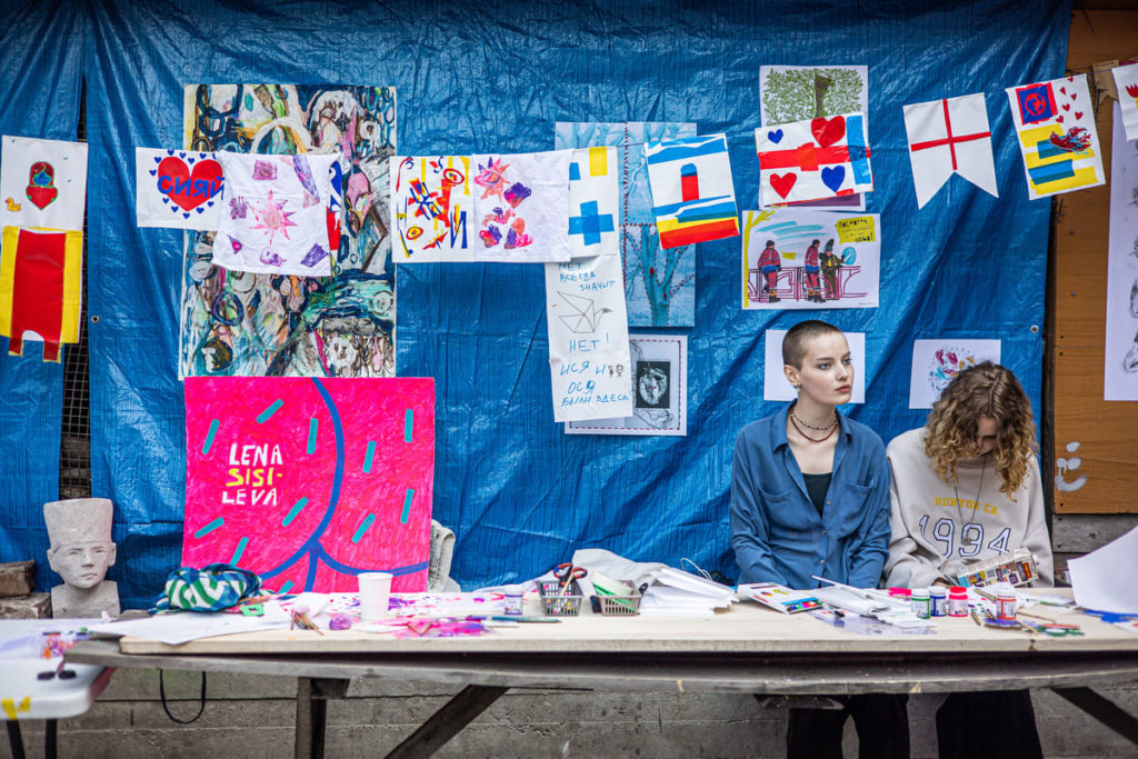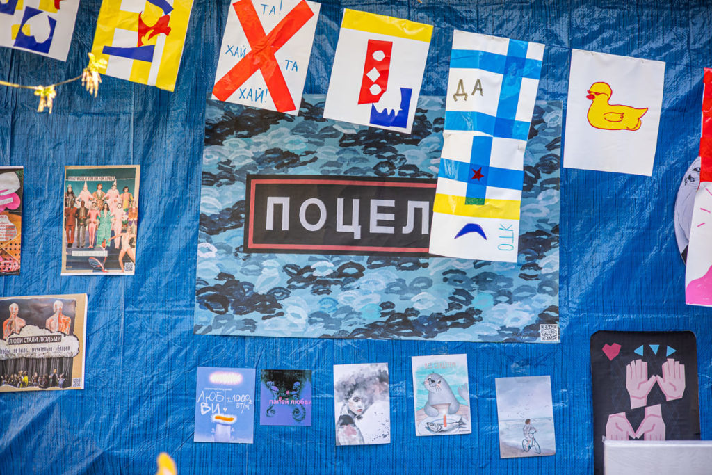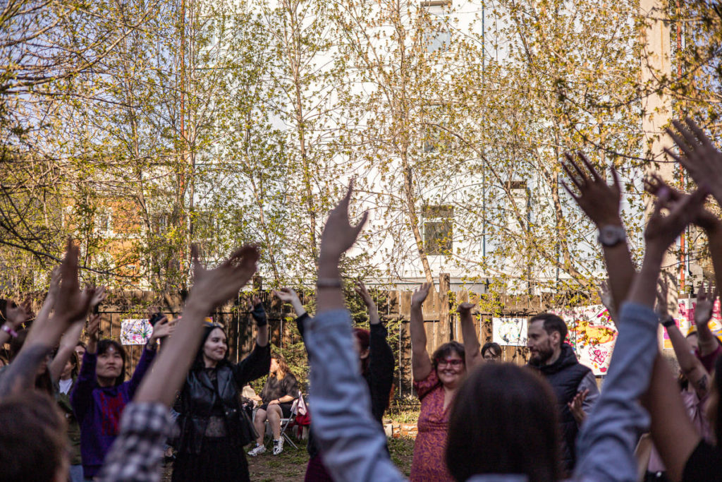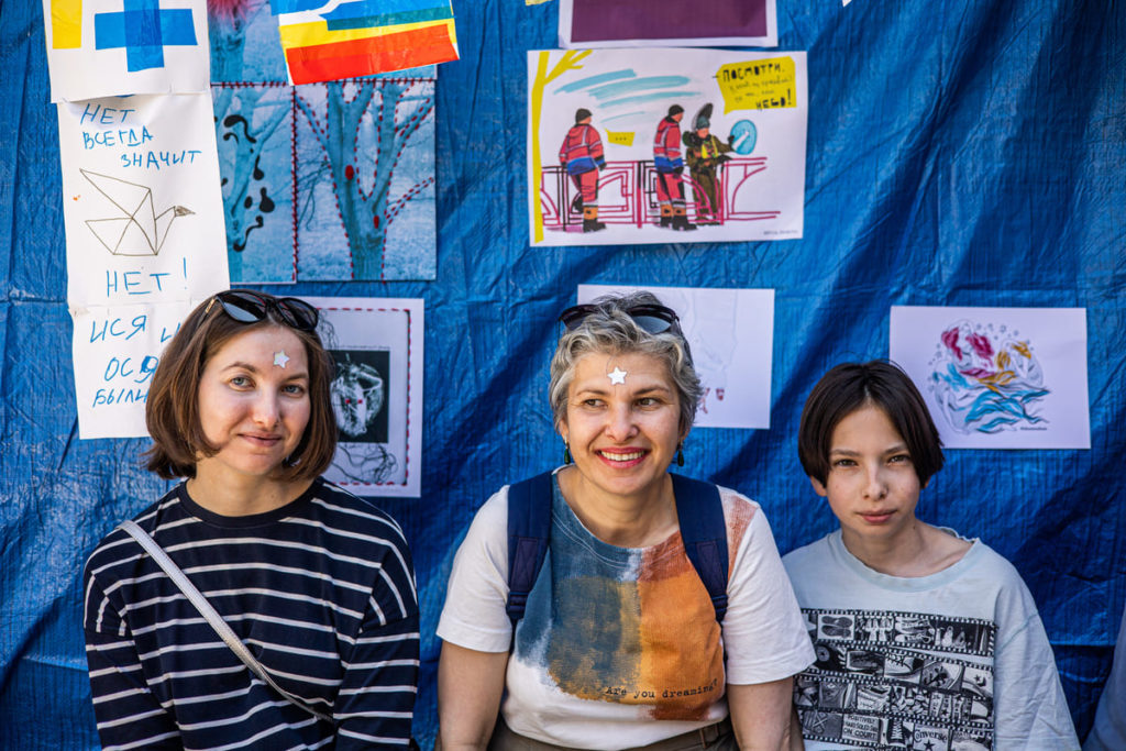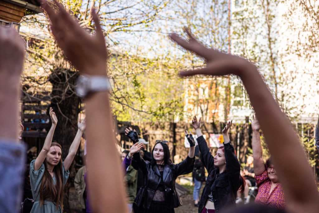 Владелица книжного магазина «Переплёт» в Иркутске Инна Миронова больше года, пока идёт война, не ходит на праздники. Говорит: «Не понимаю, чему сейчас можно радоваться». Поэтому фестиваль «Ненасильственные формы», который прошёл 21 мая возле магазина, не был праздником. «Это была встреча. Надо было посмотреть на людей, которые нормальные», — объясняет Инна. Фестиваль они придумали вместе со стрит-арт художницей Еленой Сисилёвой.