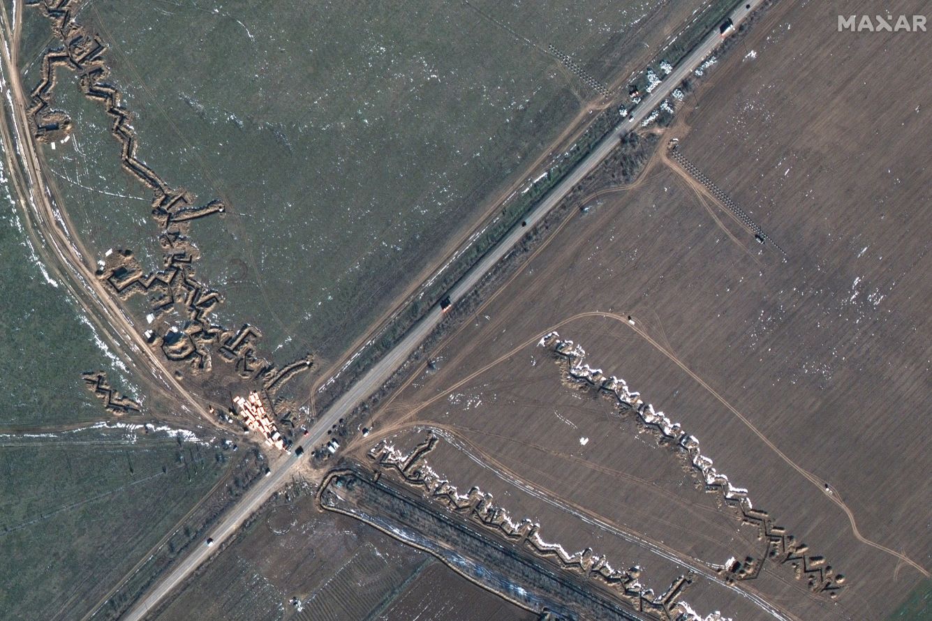 Траншеи вырыты и на северных подступах к Токмаку, а к западу от города, вдоль трассы Е-105 построены противотанковые рвы. Трасса идет от Мелитополя к линии фронта и позволяет российским войскам быстро перебрасывать подкрепления и боеприпасы. Также российские войска возвели укрепления вокруг аэродрома Бердянска в 120 километрах от Мелитополя — вероятно, на случай воздушного десанта.