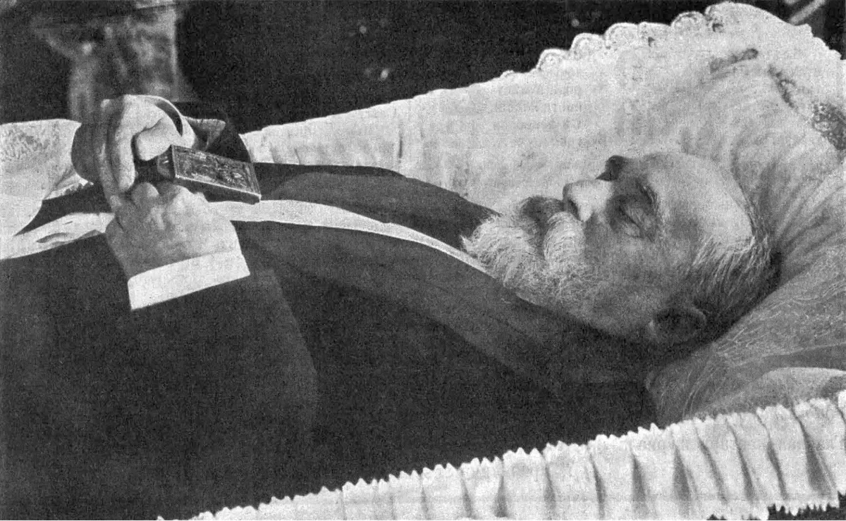 Седой, с седой бородой, седыми усами и черными бровями, в черном пиджаке, с твердым белоснежным воротничком, он с прямой спиной, чуть закинув голову назад, стоял на трибуне. Таким написал его Серов на портрете.