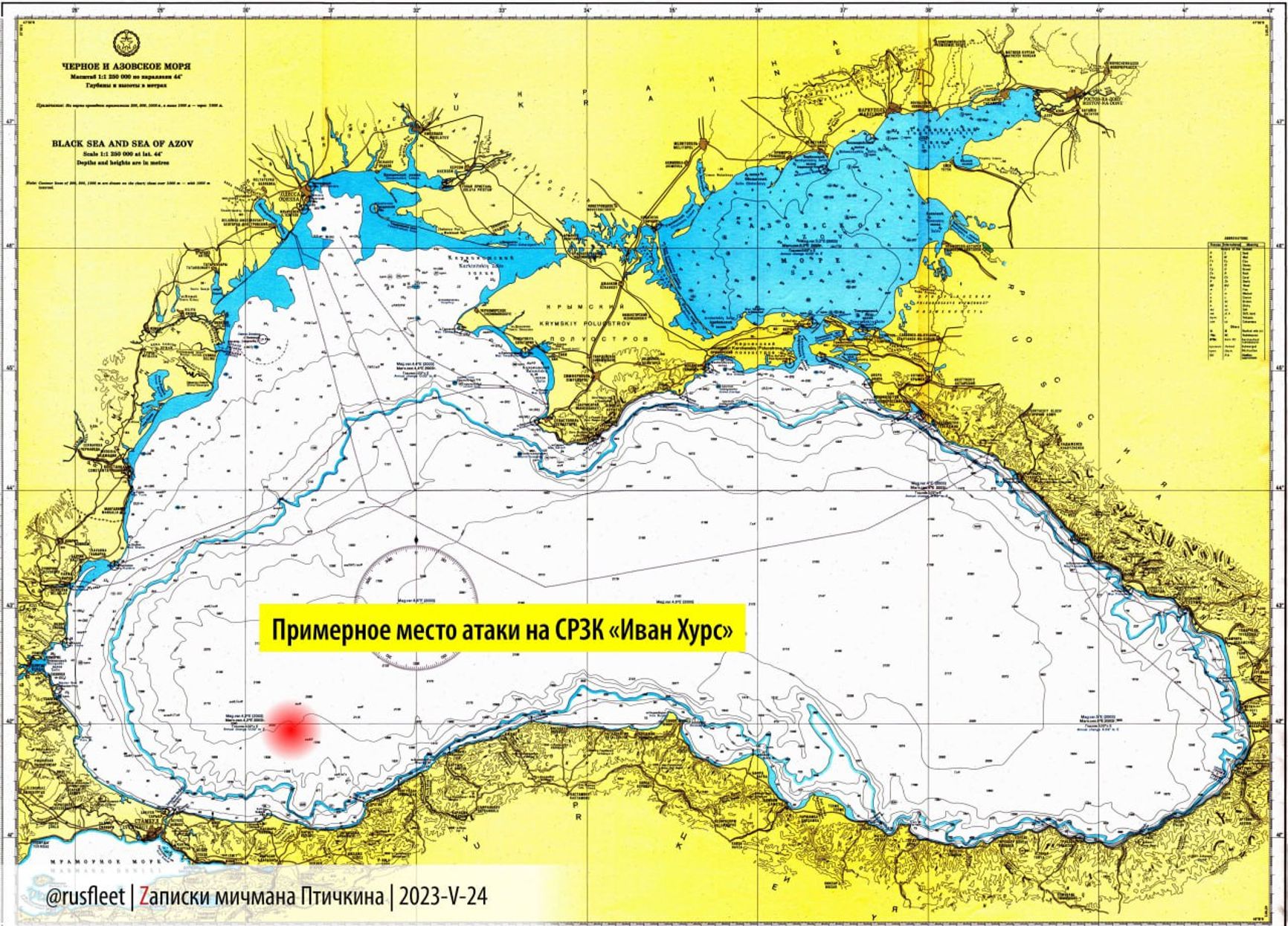 - Российский корабль «Иван Хурс», судя по всему, всё-таки был поражен одним из морских беспилотников;