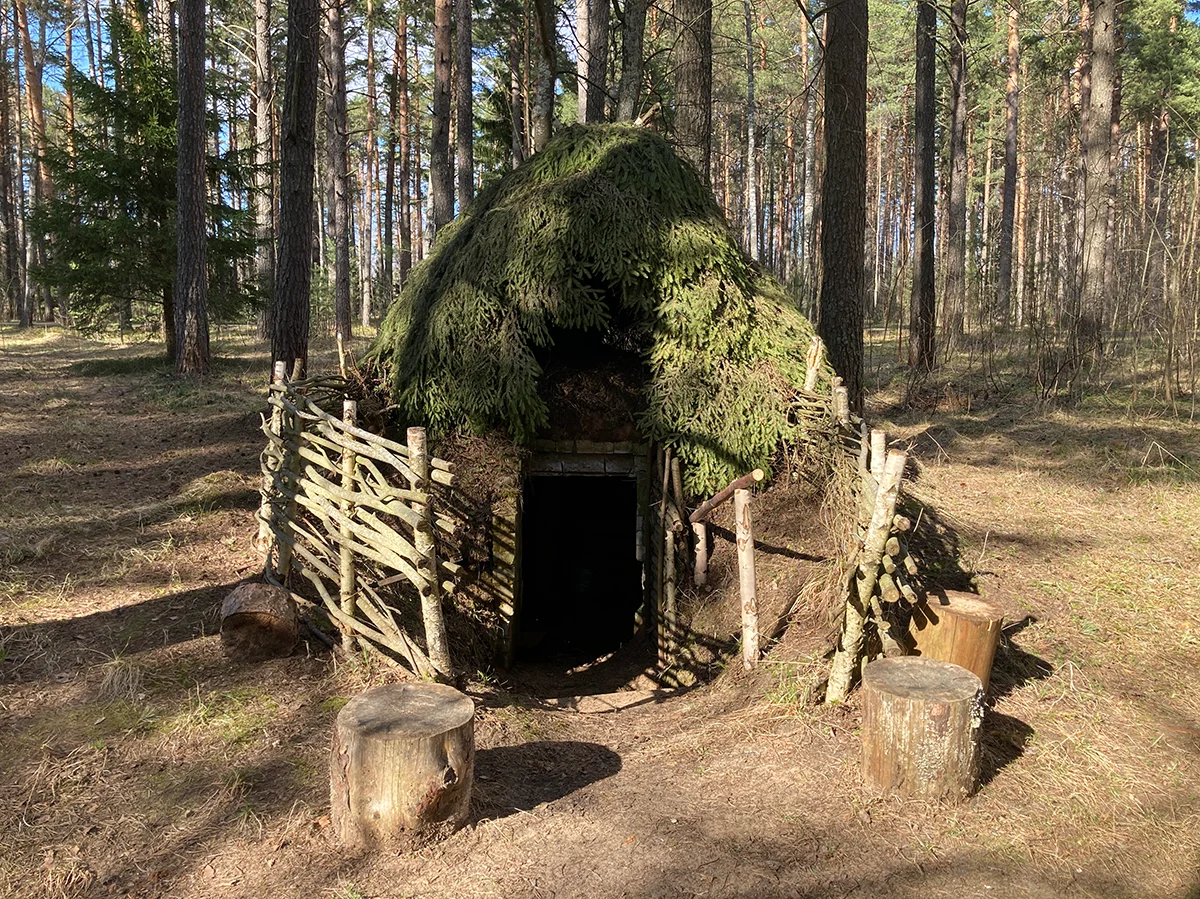 Дети стреляют не всегда метко, но в целом уже неплохо. Это видно по дыркам от пуль на щитках, к которым крепят мишени. Я была здесь три года назад, стрельбище было уже тогда, но не так хорошо оборудованное. Видно, что эта часть мемориального комплекса совершенствуется. Чтобы детки учились воевать, им тут поставили полевую кухню, столы со скамейками и даже выкопали землянку.