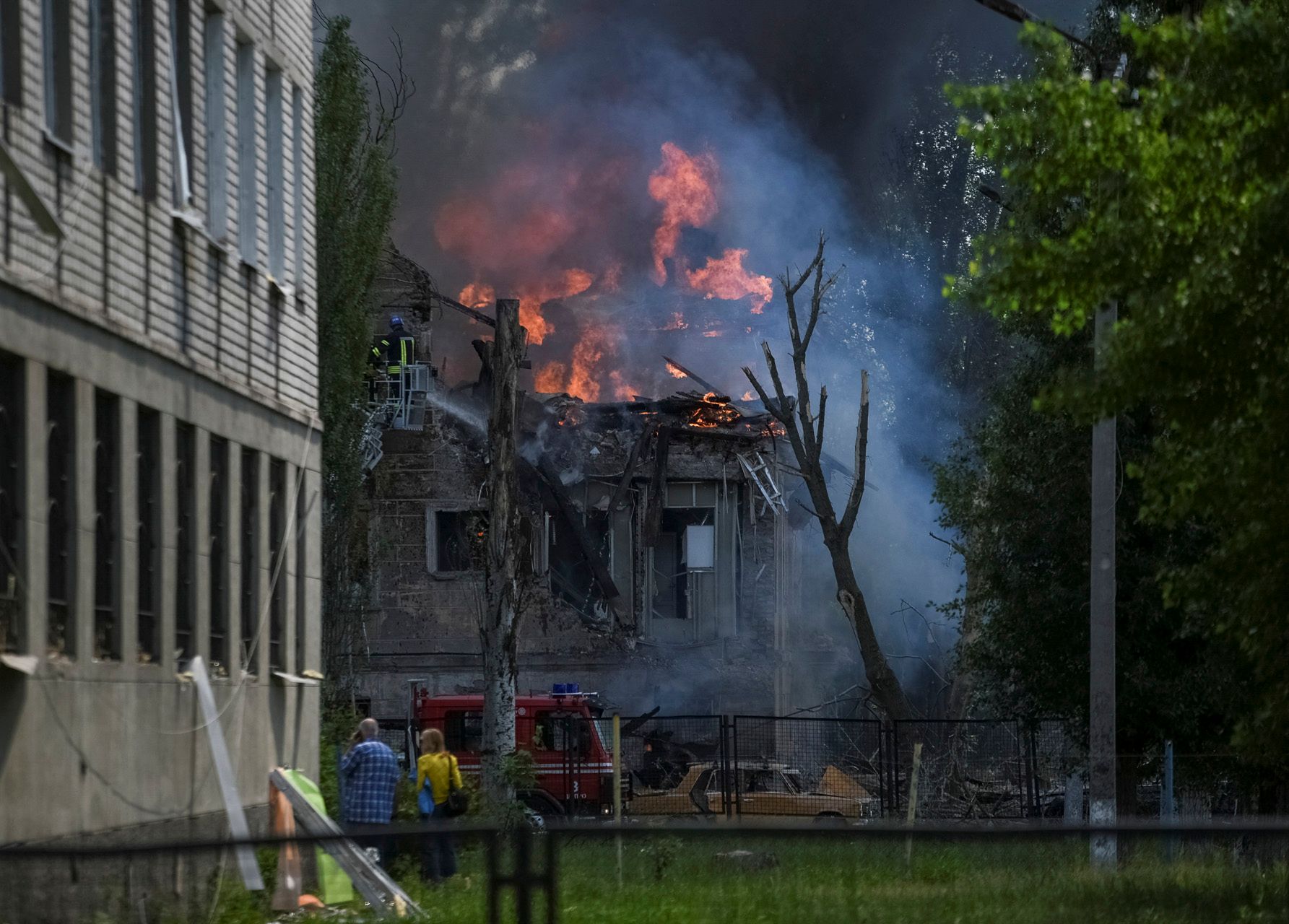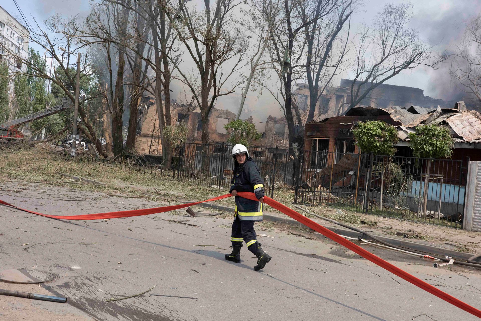 Mykola Synelnykov / Reuters / Scanpix / LETA Спасатели на месте взрыва российской ракеты в Днепре. Горит филиал городской больницы рядом с вагоноремонтным заводом. Возможно, завод был целью удара, но ракета утром 26 мая взорвалась среди жилых домов и гражданских объектов. Кроме больницы пострадали психоневрологический диспансер и ветеринарная клиника. Есть жертвы среди мирных жителейMykola Synelnykov / Reuters / Scanpix / LETA Тело погибшего жителя Днепра после удара по городу утром 26 маяJ. Daniel Hud / ZUMA Press Wire / Scanpix / LETA Пожарные на месте взрыва в Днепре