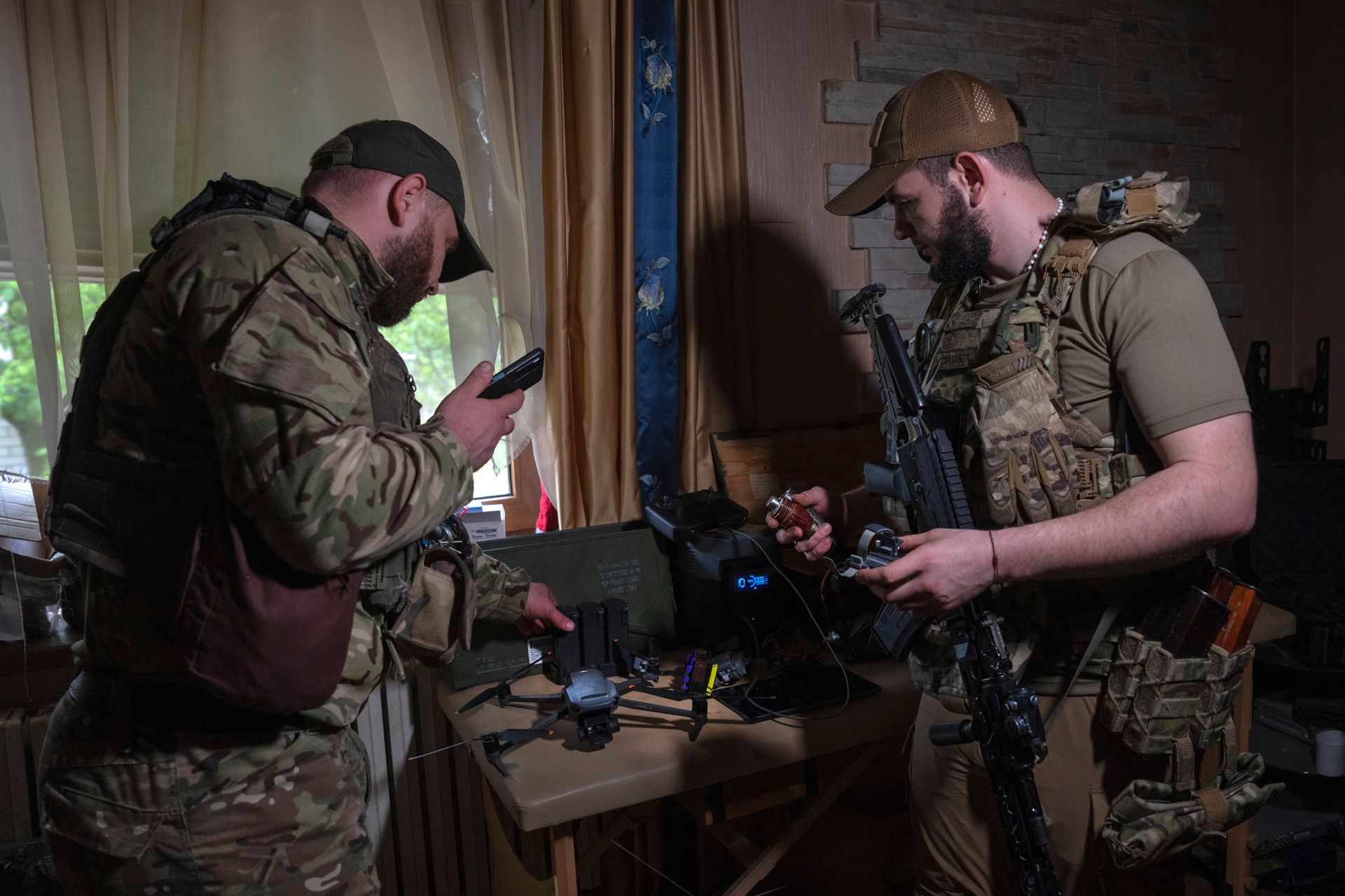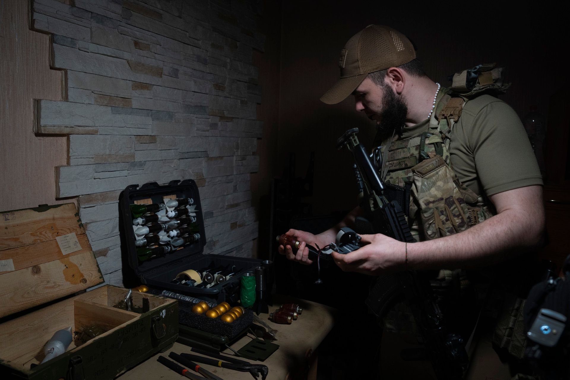Efrem Lukatsky / AP / Scanpix / LETA Офицер 59-й мотопехотной дивизии ВСУ готовит боеприпасы для сброса с дронов на российскую технику и позиции под Донецком. Ударные дроны стали одним из основных средств поражения противника на этой войнеEfrem Lukatsky / AP / Scanpix / LETA Осенью российские войска захватили поселок Пески у донецкого аэропорта, но были остановлены у поселка Первомайское. С тех пор между 59-й бригадой ВСУ и российскими силами идут тяжелые позиционные бои в ПервомайскомEfrem Lukatsky / AP / Scanpix / LETA Военнослужащие 59-й мотопехотной дивизии ВСУ управляют ударным дрономEfrem Lukatsky / AP / Scanpix / LETA Вид с дрона на руины ПервомайскогоEfrem Lukatsky / AP / Scanpix / LETA Разрушенная церковь Казанской иконы Божией Матери в Первомайском