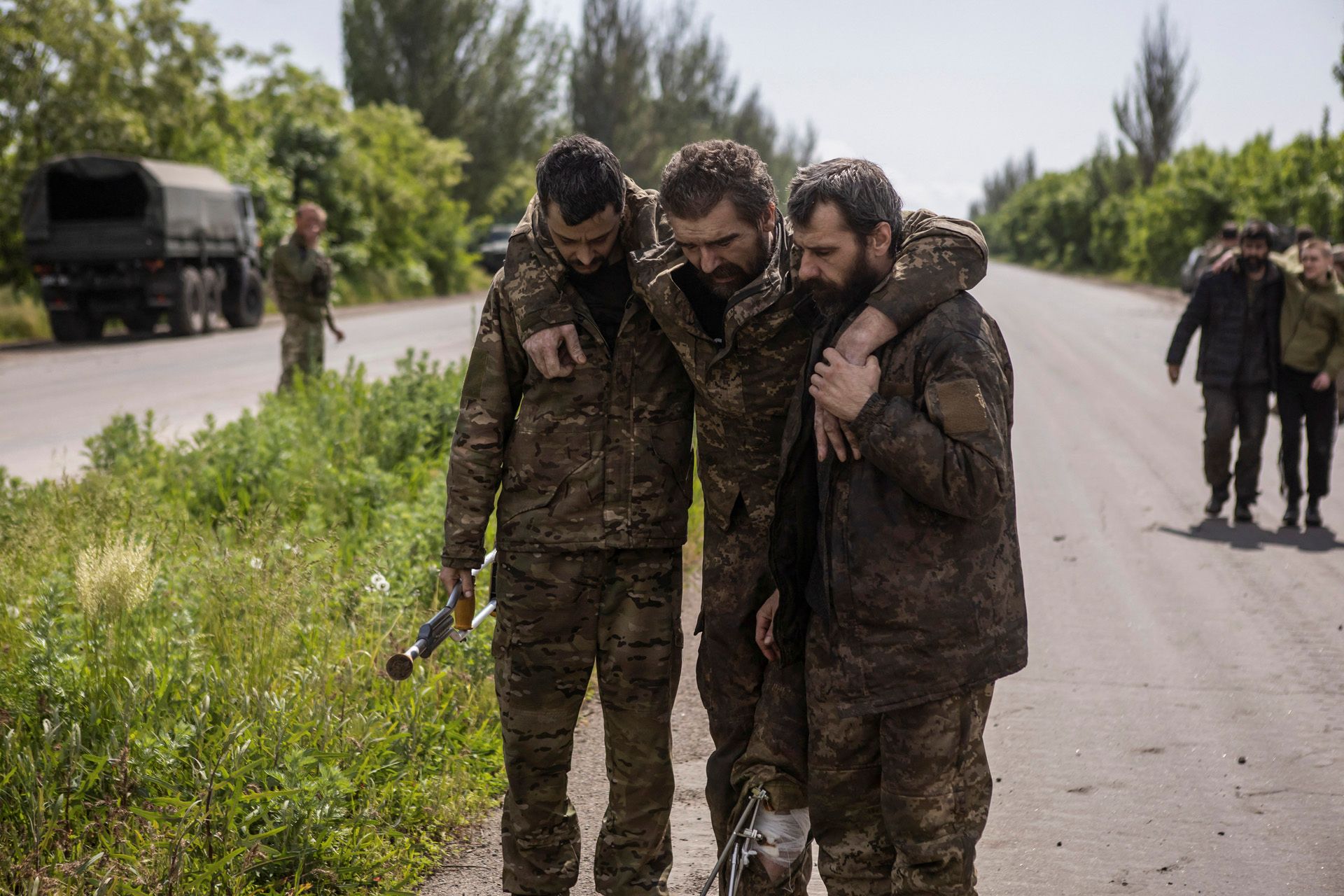 Главные фотографии дня. Украинские солдаты после обмена пленными и телами погибших