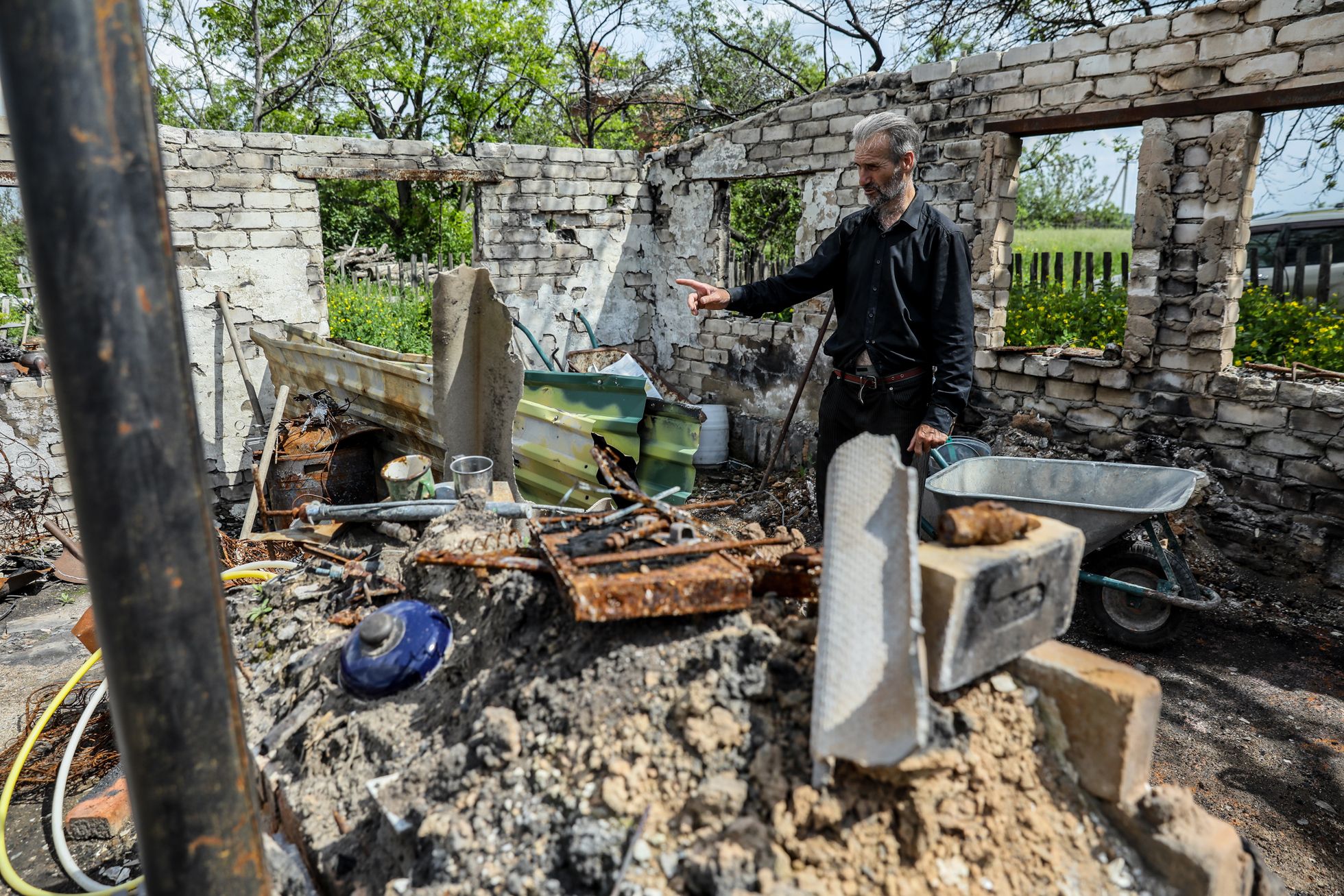 Oleg Petrasyuk / EPA / Scanpix / LETA Село Богородичное Донецкой области 14 раз переходило из рук в руки. В середине сентября 2022 года ВСУ освободили его в ходе контрнаступления. До начала полномасштабного вторжения в Богородичном жило около 800 человек — почти все они эвакуировались из села весной 2022-го. Сейчас некоторые возвращаются в свои домаOleg Petrasyuk / EPA / Scanpix / LETA Oleg Petrasyuk / EPA / Scanpix / LETA 63-летняя Катерина у разрушенных ворот своего дома. Когда весной 2022 года вокруг Богородичного шли ожесточенные бои, Катерина вместе с дочерьми уехала в Святогорск, расположенный в шести километрах. Она вернулась домой в середине мая 2023-гоOleg Petrasyuk / EPA / Scanpix / LETA 56-летний Юрий среди руин своего дома. Весной 2022-го Юрий эвакуировался в Днепропетровскую область. Он был первым жителем Богородичного, вернувшимся в село в декабре после его освобождения. Сейчас он живет в доме своего соседаOleg Petrasyuk / EPA / Scanpix / LETA 55-летняя Виктория возле воронки от снаряда, упавшего недалеко от ее сада. Они с мужем вернулись в Богородичное 23 маяOleg Petrasyuk / EPA / Scanpix / LETA Виктория в доме своей дочери