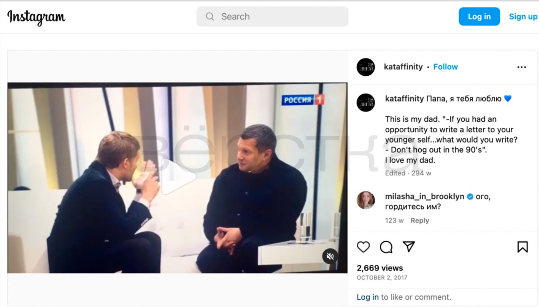 Журналисты утверждают, что Екатерина, которая на своих открытых страницах в соцсетях критикует ограничительные законы и призывает общество к толерантности, является дочерью одного из главных пропагандистов в стране. В постах женщина призывала донатить в фонды «Насилию.нет» и «ОВД-Инфо» и критиковала аресты протестующих.