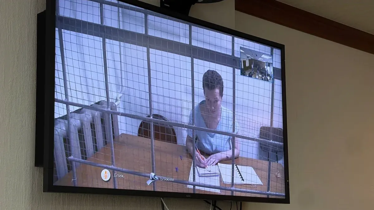 Евгения Беркович по видеосвязи из СИЗО. Фото: Василий Полонский / «Новая газета»
