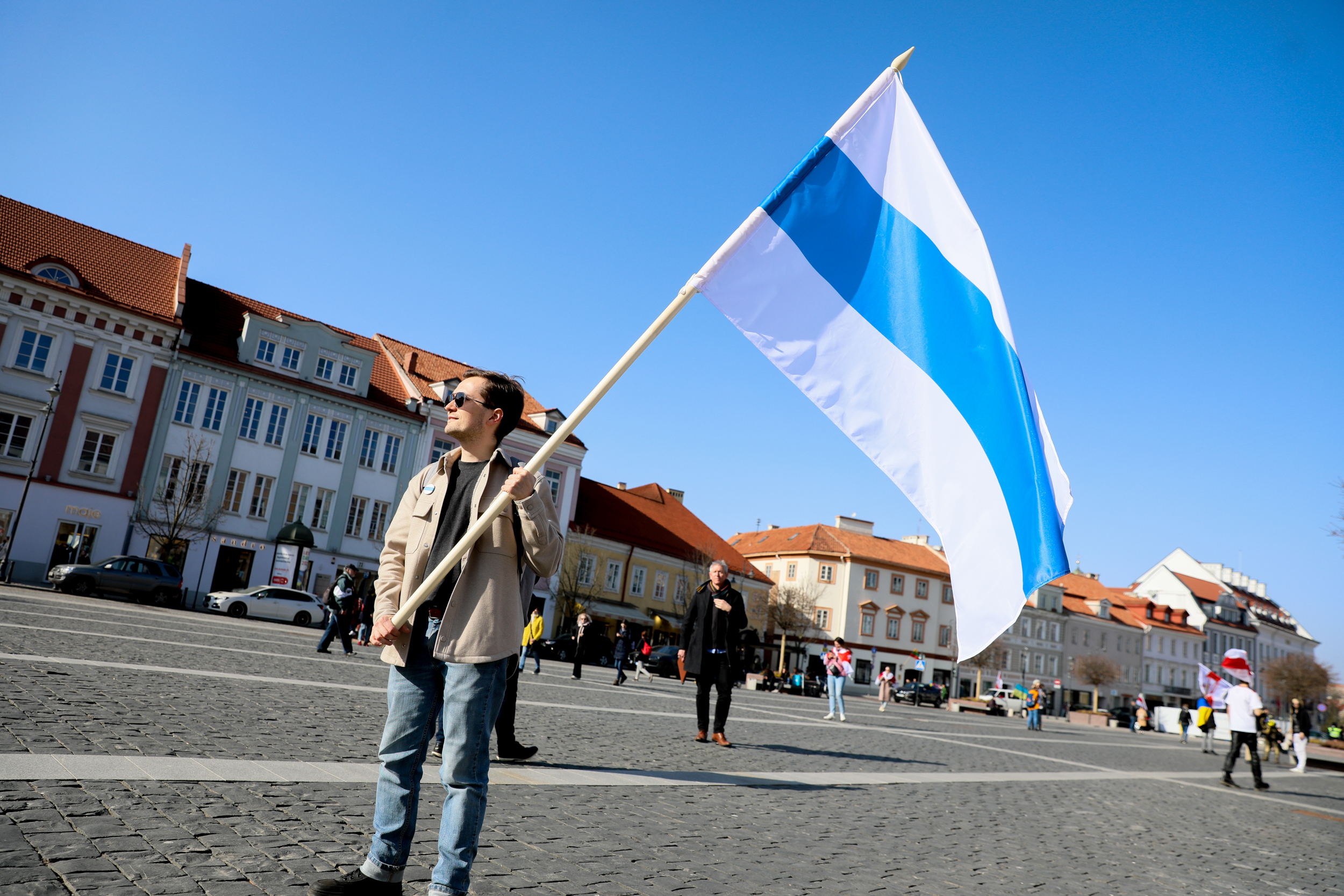 "Российский триколор навсегда превратился в символ военной агрессии, гибели и страданий мирного населения. И уже сегодня российские оппозиционные активисты в разных местах отказываются от "крови" на стяге и выходят на улицы с бело-сине-белым флагом — символом борьбы против российской военной агрессии и солидарности с героическим народом Украины. И вполне возможно, что в скором времени этот флаг станет государственным символом новой свободной и демократической России", - говорил в марте сооснователь ФСР Иван Тютрин.