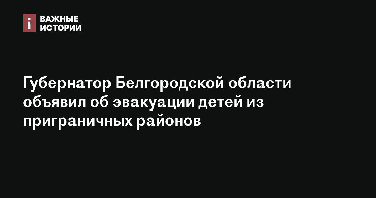 Губернатор Белгородской области объявил об эвакуации детей из приграничных районов