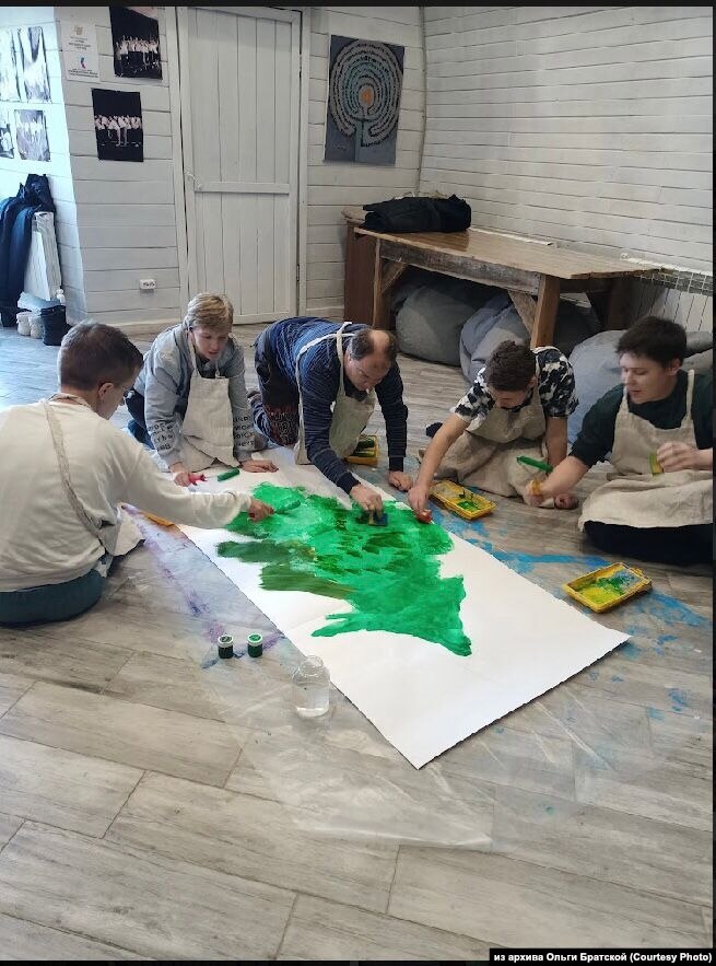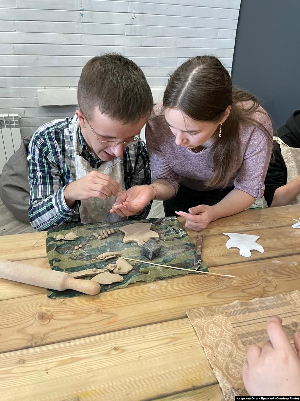 Ольга Братская и ее ученики на арт-терапевтических занятиях в инклюзивном кластере, Братск