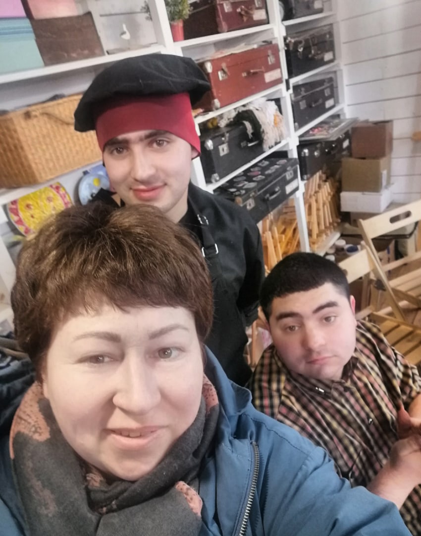 – У Давида погранично-тяжелая с умеренной, I группа инвалидности, а у Наума умеренно-легкая, тоже пограничная, у него II группа инвалидности, – рассказывает их мама Ирина. – Диагноз один – умственная отсталость. С Давидом мы в кластер на занятия по глине по средам приезжаем. Раньше я его привозила и оставалась рядом с ним, как в любом другом месте. Сейчас я могу спокойно оставить его на занятии в мастерской. Знаю, что с ним там все будет хорошо, будет заниматься, успокоят, если нужно, подбодрят, и уже не нужно мое постоянное присутствие рядом с ним. Это безопасное место, которому можно доверить своего ребенка. А Наум работает в ресторане. Мы выучились на повара. И когда в кластере Ольги открылся ресторанчик, появилась возможность устроить его туда на работу. С декабря он там уже работает, тьфу-тьфу, справляется.