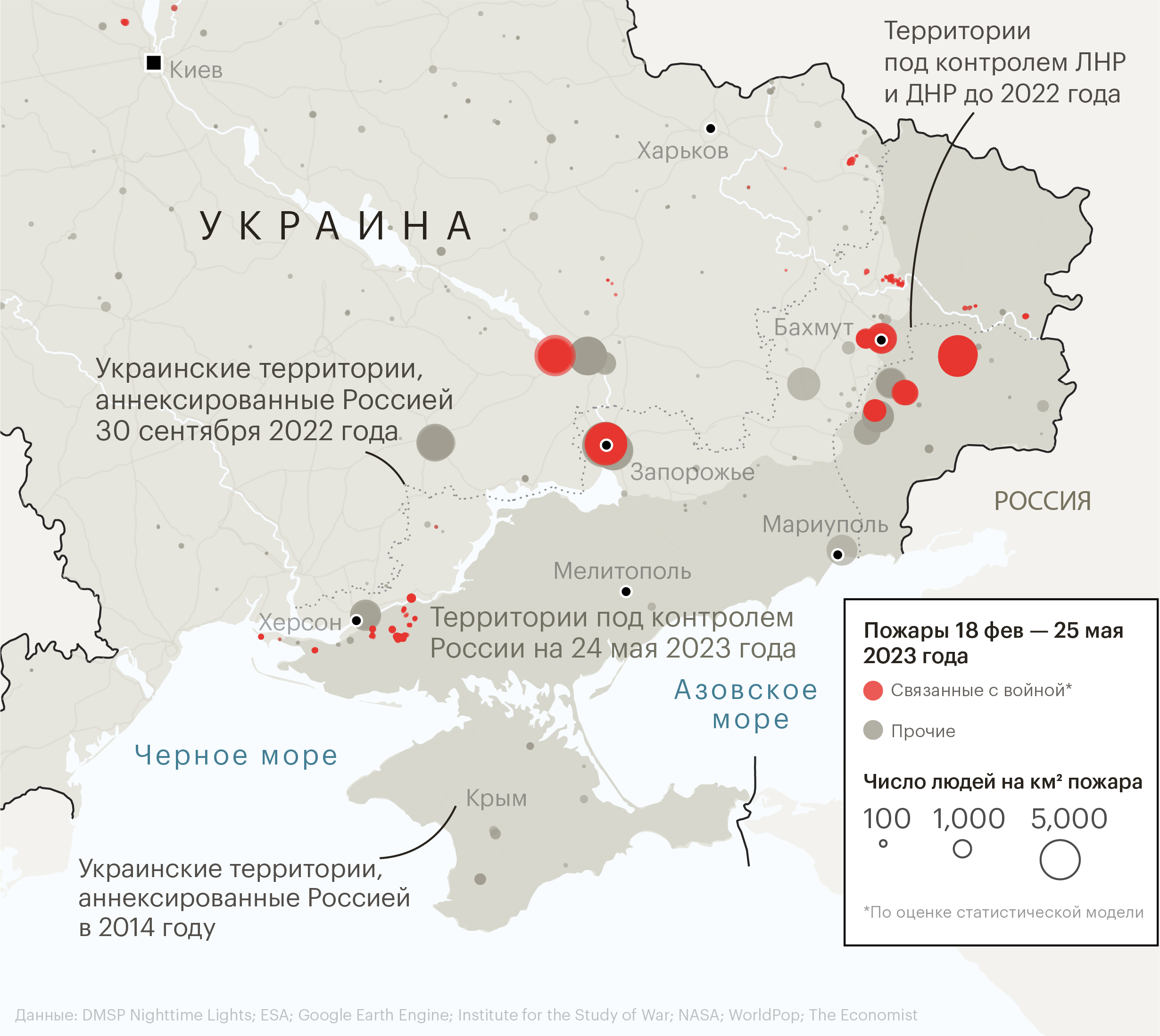 Оригинал: Satellite data show Ukraine’s forces are testing Russia’s defences, The Economist, May 25, 2023.