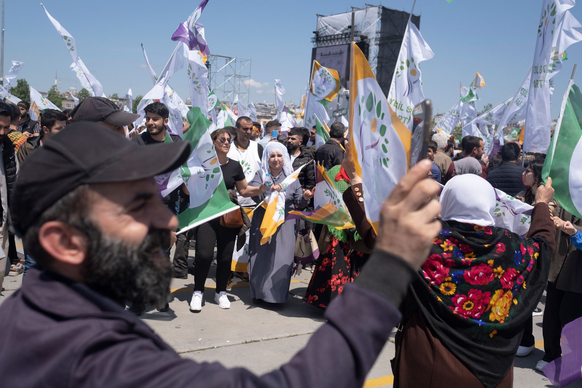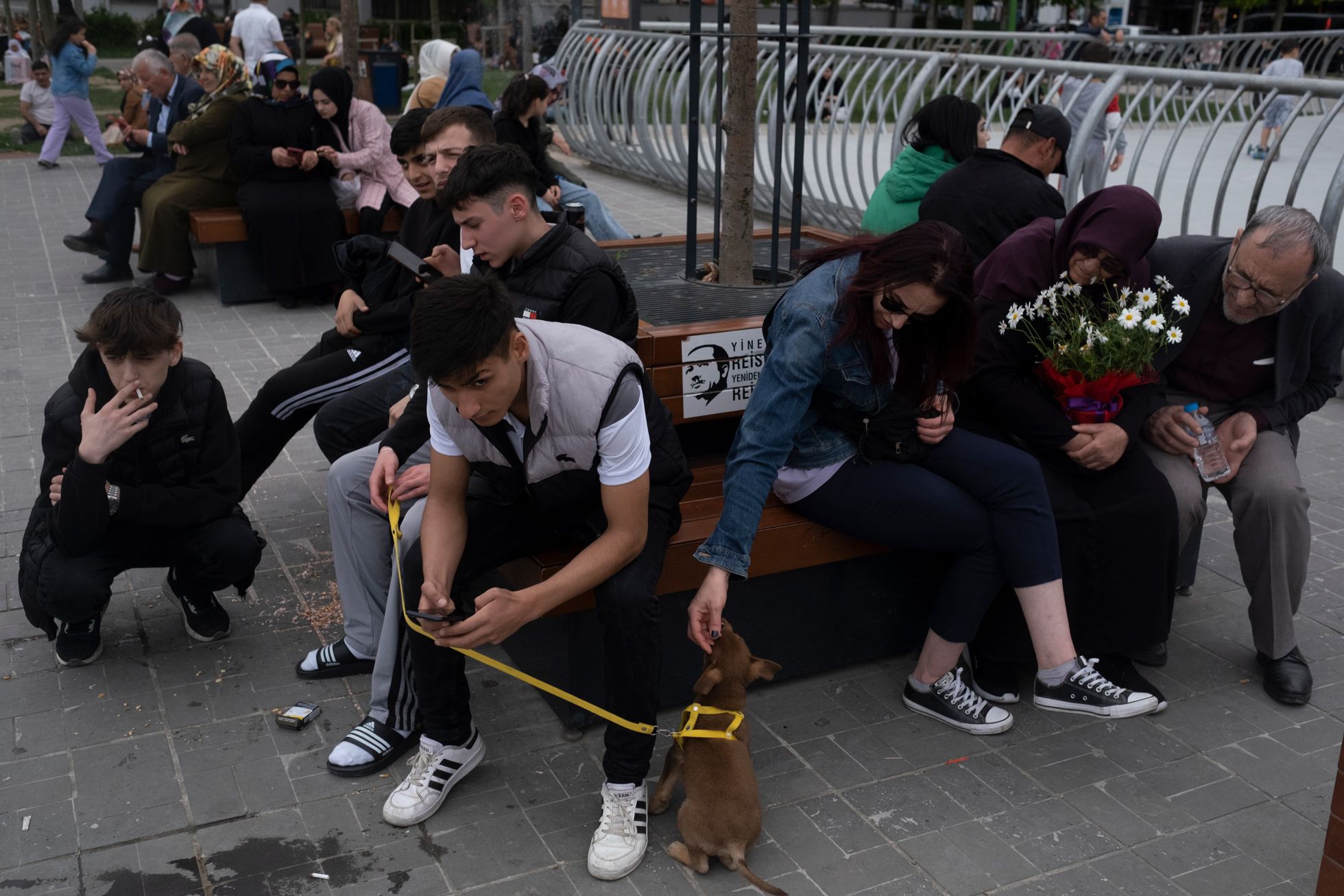 Накануне дня выборов, 13 мая, я исследовал центр Стамбула, чтобы понять, чем живет город во время президентской гонки. Не успел я выйти из станции метро «Еникапы», как сразу же оказался перед полицейским кордоном. Недалеко от метро левая зеленая партия Yeşil Sol, поддерживающая оппозицию, устроила митинг. Я пошел вдоль полицейских ограждений вслед за толпой — молодые люди и девушки веселились и танцевали.