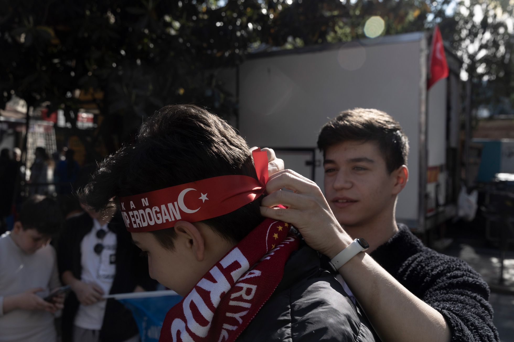 По закону после шести вечера в день накануне голосования наступает время тишины. На часах было уже около семи, однако это никого не смущало. Везде развевались флаги с портретами Эрдогана, люди громко пели песни и фотографировались.