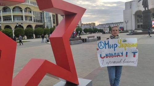 9 мая мать троих детей вышла на улицу с плакатом «Мир Украине. Свободу РФ. Я против войны!». На активистку составили протокол по статье о «дискредитации армии». Суд прекратил дело ввиду отсутствия состава преступления.