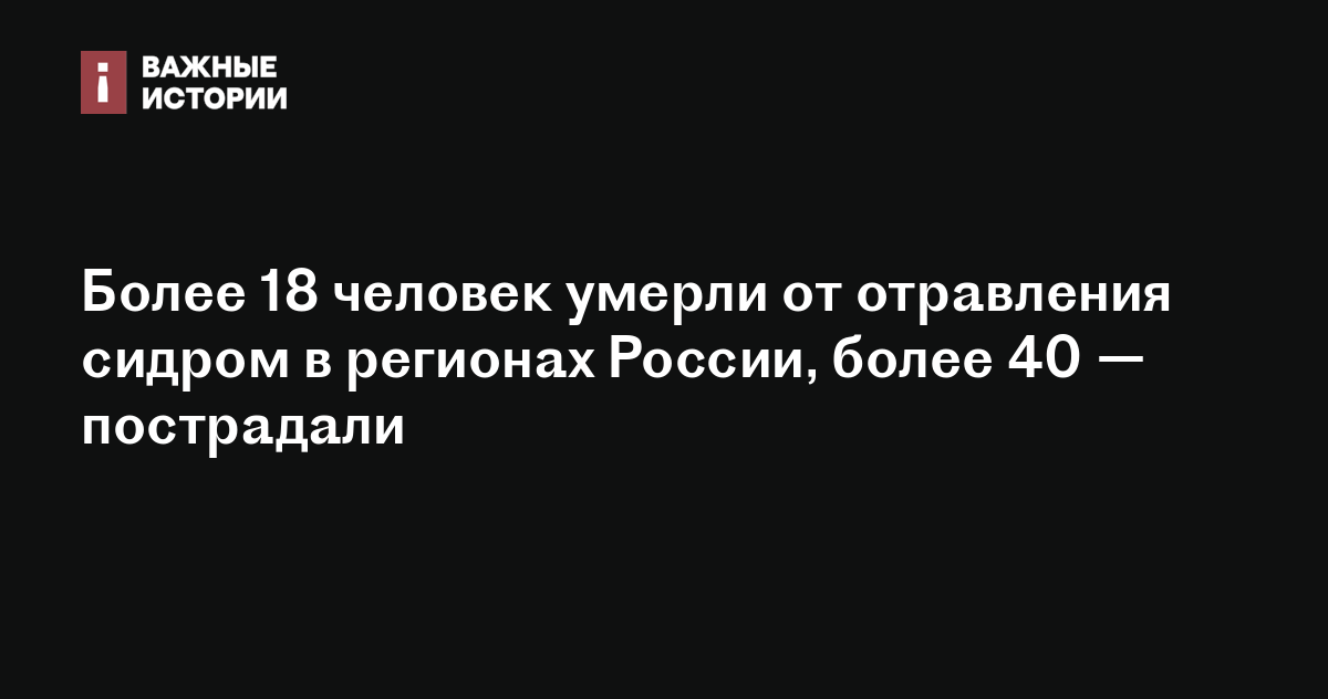 Как минимум 18 человек умерли от отравления сидром марки «Мистер Сидр» в регионах России, более 40 — пострадали, сообщают власти Ульяновской, Нижегородской и Самарской областей, а также Удмуртии.