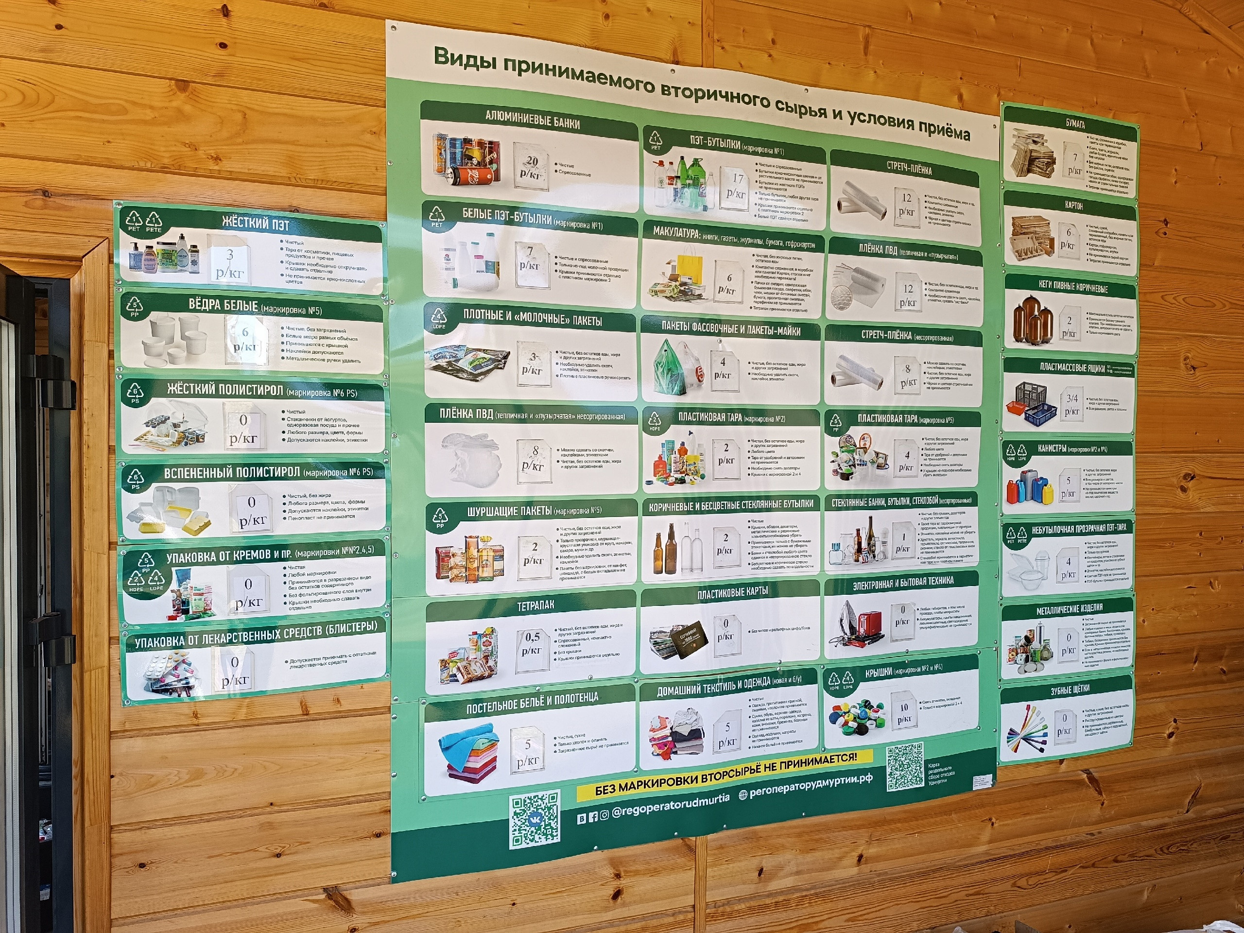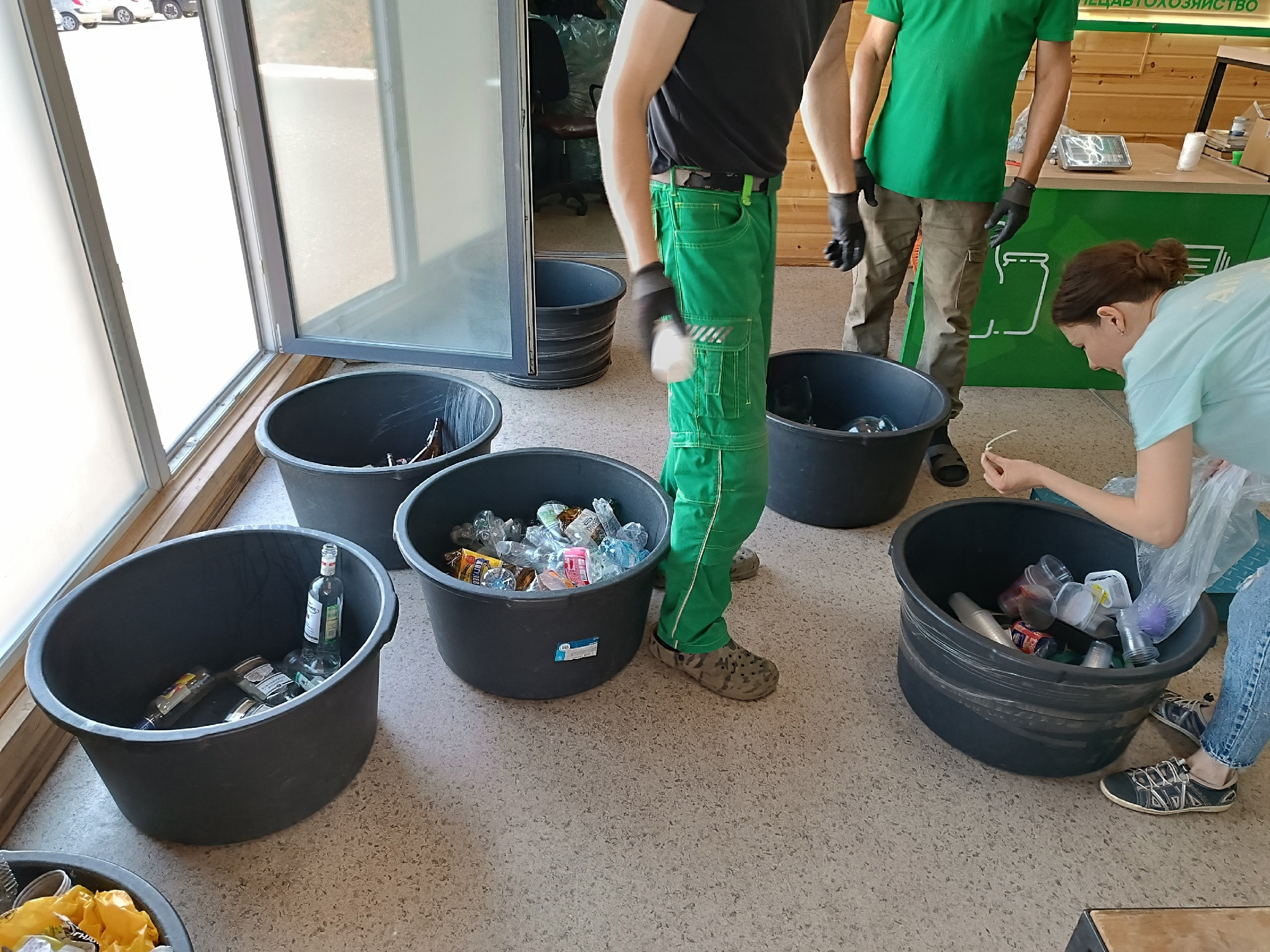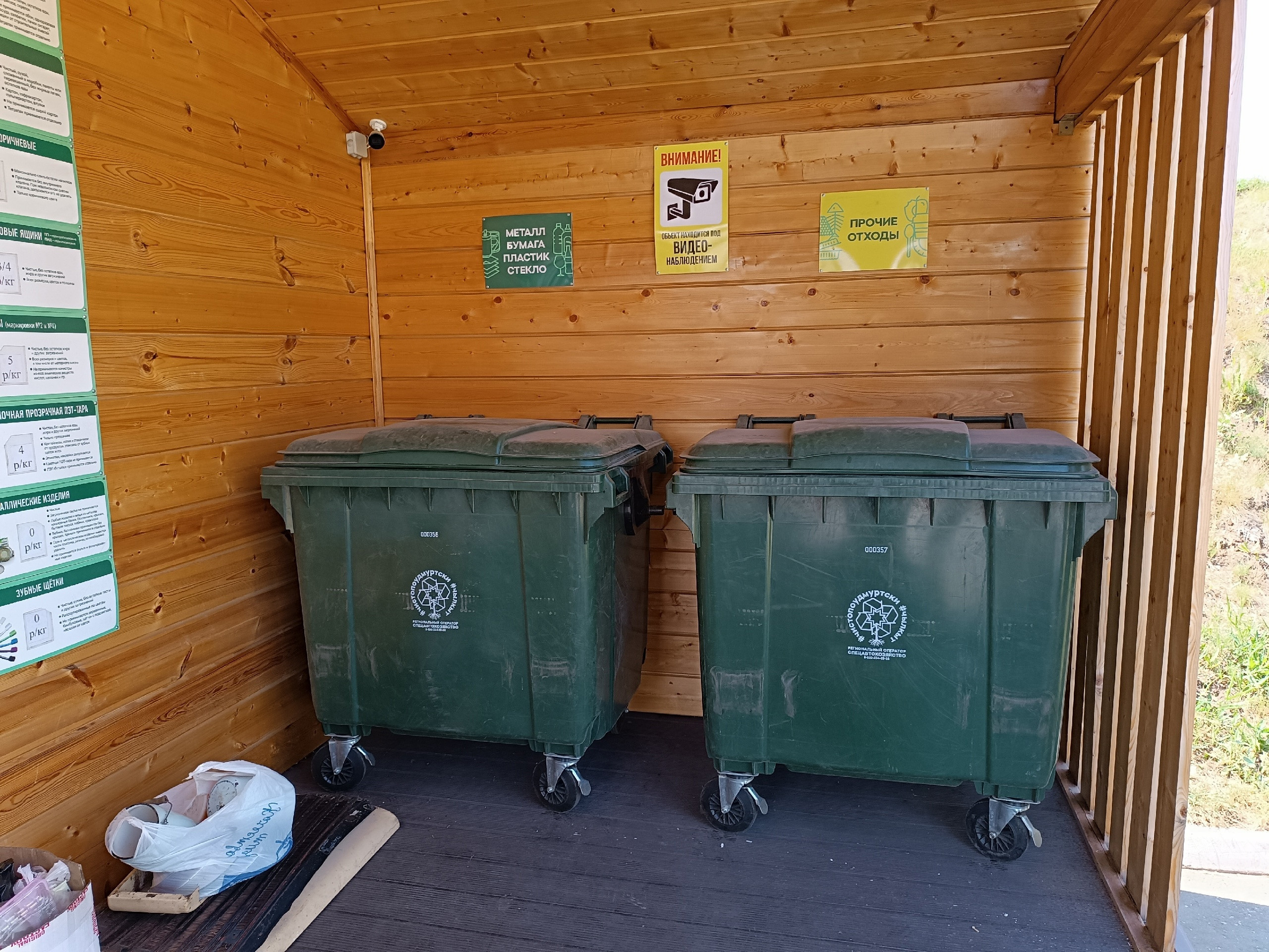 Выглядит всё очень достойно. Широкий ассортимент принимаемых фракций, удобная зона приёма, в том числе, для выгрузки из легкового автомобиля. Даже такие мелочи, как удобные пластиковые тазы для сортировки на месте.