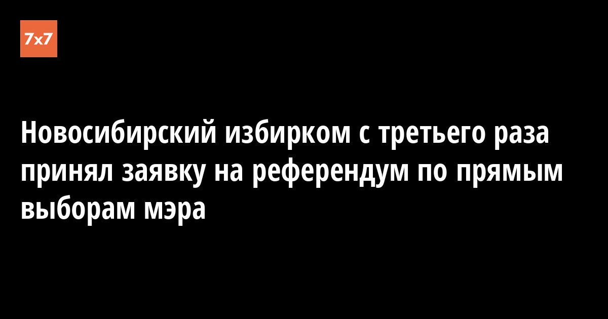 Избирком в Новосибирске с третьего раза принял заявку на проведение референдума по возвращению прямых выборах мэров в городах области. Об этом 5 июня сообщил в своем телеграм-канале независимый депутат Антон Картавин.