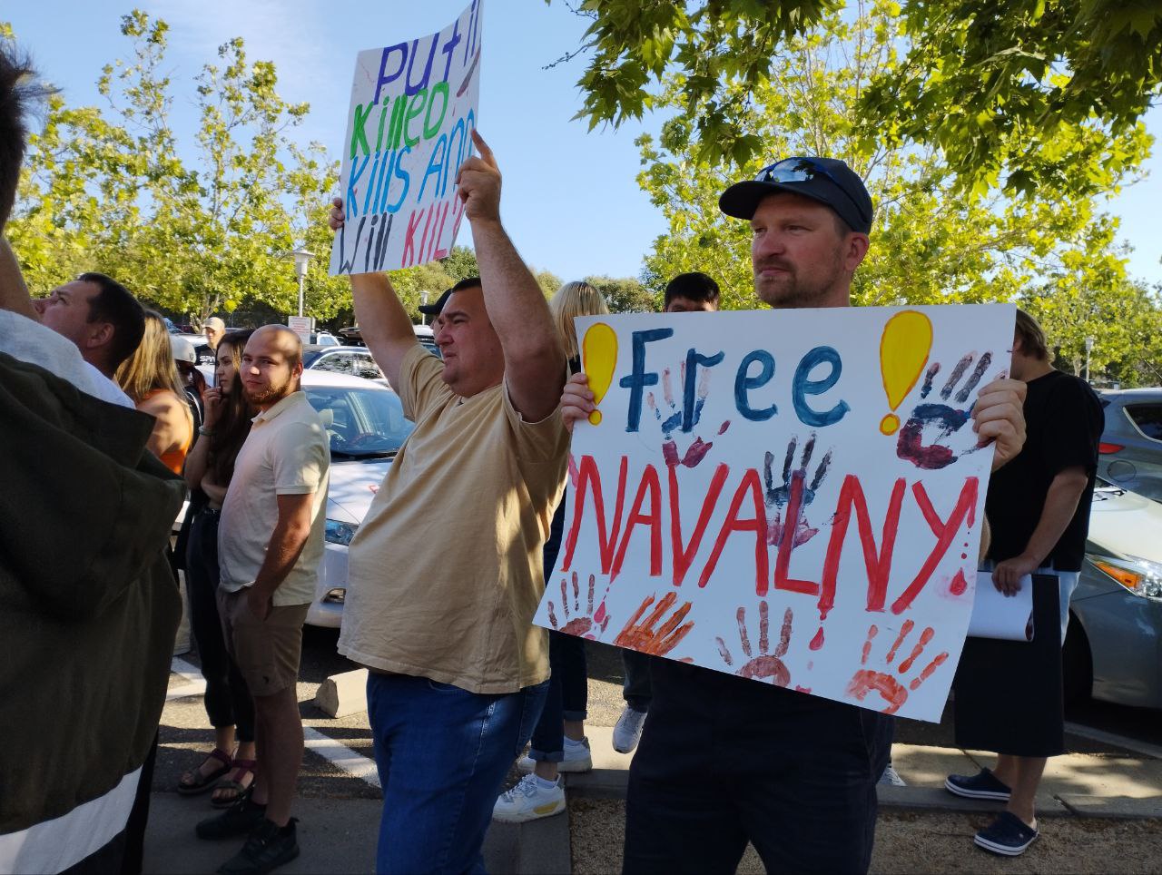 Житель Омска Иван Куницкий вышел с плакатом Free Navalny в Сакраменто (Калифорния), сообщил он Сибирь.Реалии. Другие участники также держали плакаты: Putin killed, kills and will kill? (Путин убивал, убивает и будет убивать?), Hands off Ukraine (Руки прочь от Украины). Куницкий вынужденно уехал из России, поскольку соседи угрожали ему физической расправой из-за антивоенной позиции.