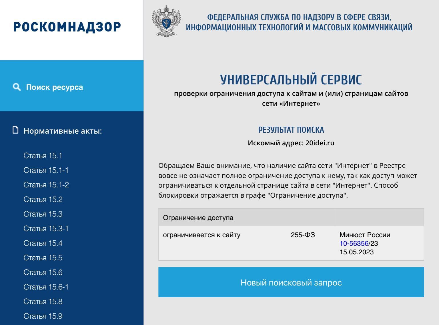 «Целых три сайта по основанию 15.9! — рассуждает Кулин. — Отмечу, что все мои сведения я могу подтвердить официальными подписанными выгрузками. Я не придумал ни Минюст, ни 15.9. Любой может это проверить прямо сейчас. Все блокировки в РФ должны осуществляться согласно закону. Это статьи 15* закона 149-ФЗ от 27.07.2006 «о защите информации». Для сайтов иноагентов есть отдельный пункт 15.9. Вкратце: в случае установления вступившим в законную силу постановлением по делу об административном правонарушении нарушения порядка деятельности иностранного агента Роскомнадзор ограничивает доступ к информационному ресурсу соответствующего лица». И там нет ни слова про Минюст.