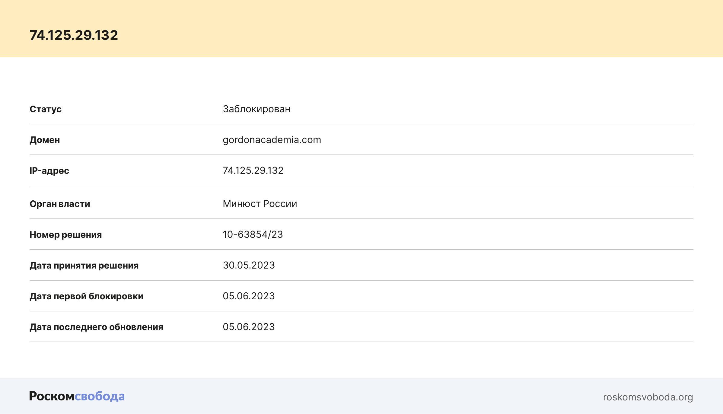 Чтоб посмотреть основания для блокировки вышеупомянутых сайтов, мы обратились к универсальному сервису РКН проверки ограничения доступа: