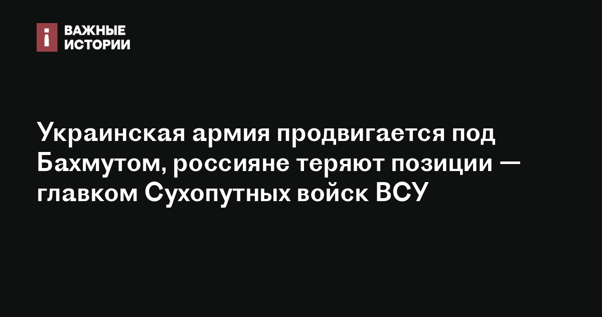 Украинская армия продолжает продвижение на флангах под Бахмутом, российские войска теряют позиции, написал утром командующий Сухопутных войск ВСУ Александр Сырский.