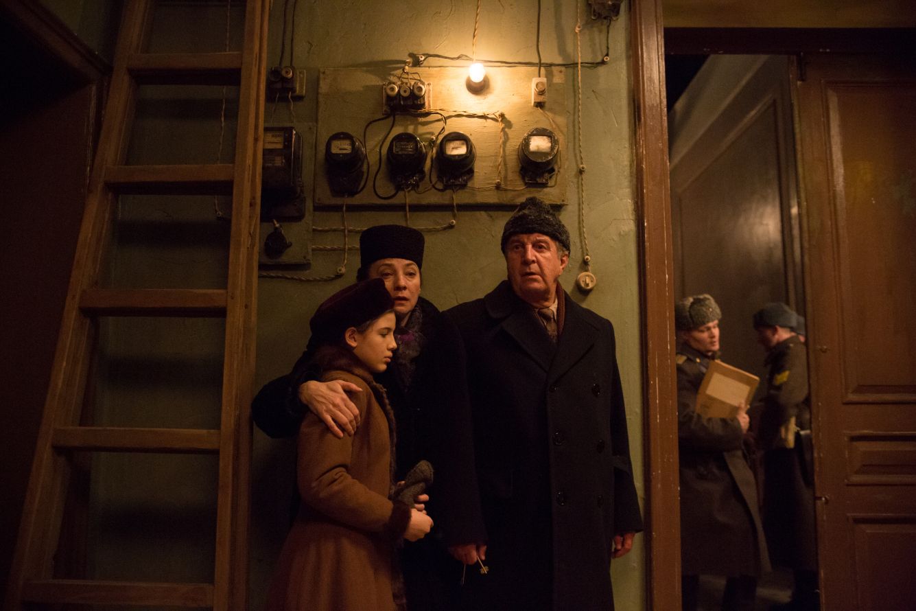 Начинается картина с эпически длинной экспозиции, в которой нам представляют действующих лиц — многочисленных обитателей коммуналки. Особенное внимание уделяется опасно свободолюбивому профессору Павлу Казимировичу Петкевичу (Андрей Смоляков), его жене Ангелине Федоровне (Ирина Розанова), работающей в издательстве дочери Ариадне, она же Дина (Юлия Снигирь), ее мужу — партийцу-метростроевцу Борису (Александр Устюгов) и их сыну Сашке (Денис Давыдов).