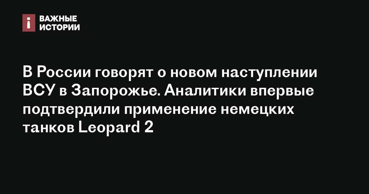 В России говорят о новом наступлении ВСУ в Запорожье. Аналитики впервые подтвердили применение немецких танков Leopard 2