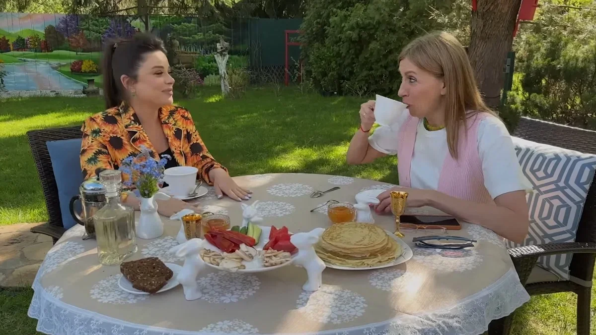 Анонс обещает интервью про ностальгию, теплое настроение и любовь. Обе дамы весело щебечут за накрытым столом на изумрудной лужайке в загородном поместье Королевой. Певица вспоминает самые необычные подарки ко дню рождения, лихо забирается на гигантского декоративного зеленого слона (подарок любимого мужа), предвкушает юбилейные сюрпризы.