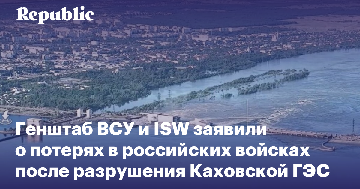 В Генштабе ВСУ сегодня заявили, что российские войска были не готовы к последствиям разрушения плотины Каховской ГЭС в Херсонской области и понесли потери в живой силе, вооружении и военной технике на левом берегу Днепра, бросив там свои позиции. Это подтверждают аналитики американского Института изучения войны (ISW).