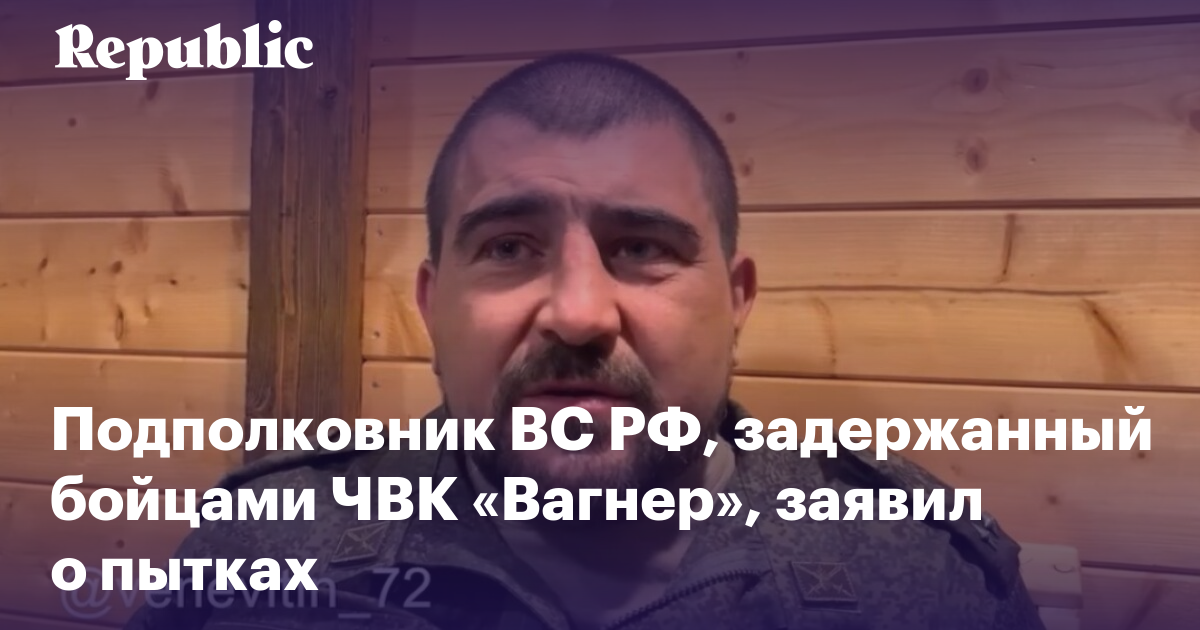 Подполковник российской армии Роман Веневитин, о задержании которого за обстрел бойцов ЧВК «Вагнер» в начале этой недели сообщала пресс-служба Евгения Пригожина, завел свой телеграм-канал. В нем он публикует видео, в которых высказывает мысли по поводу военных действий в Украине и ситуации в войсках РФ. Веневитин обвинил наемников ЧВК в пытках, провокациях и похищениях людей, а также заявил, что Пригожин занимается дискредитацией российской армии. Republic приводит его главные заявления.