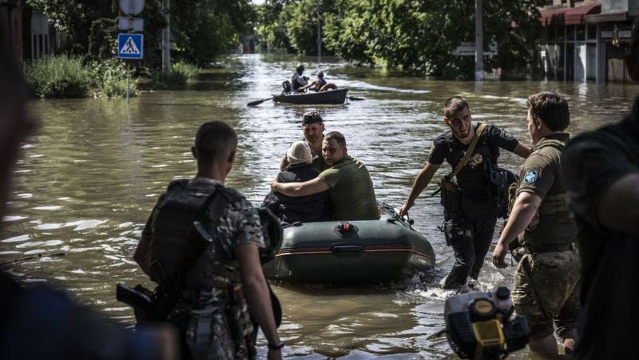 Он также сообщил, что с момента разрушения плотины прошло двое суток, однако российские военные и сотрудники МЧС начали спасать людей только 8 июня, после того как им поступило распоряжение от президента РФ Владимира Путина.
