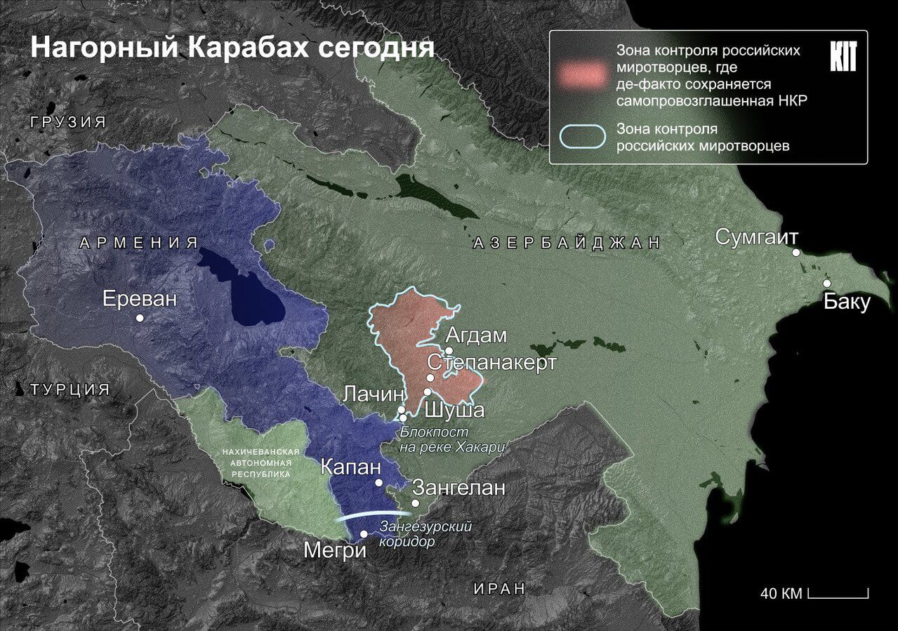 В конце осени 2020-го ситуация стала критической: 7 ноября азербайджанцы взяли город-крепость Шушу. Понимая бедственность своего положения, армяне вывезли всех мирных жителей из столицы Карабаха, Степанакерта. Через два дня, в ночь с 9 на 10 ноября, лидеры Армении, Азербайджана и России подписали трехстороннее соглашение. Это был промежуточный документ с большим количеством возможностей для вольных трактовок, но он обязал стороны прекратить огонь — и остановил вторую карабахскую войну. Соглашение позволило России ввести в регион миротворцев, а также обязало Ереван пойти на еще большие территориальные уступки. Так, Армения обязалась отдать Агдамский, Кельбаджарский и Лачинский районы (остальные четыре района азербайджанцы к тому моменту уже и так взяли под контроль). По сути, этот документ был для Еревана проигрышным, но выхода не было — иначе стране грозило полное военное поражение.