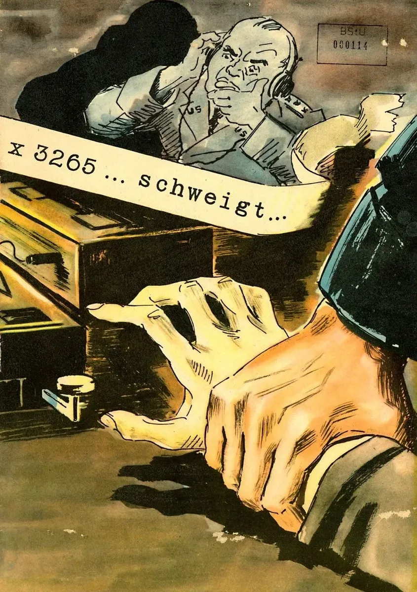 Но руководству СЕПГ надо было обосновать свою официальную позицию. Она заключалась в том, что протесты были попыткой фашистского переворота, организованного и контролируемого диверсантами и провокаторами с Запада. Вокруг этого была построена пропаганда теории заговора, нагнеталась шпиономания. 1 ноября объявлено о разоблачении и разгроме «агентурной сети западногерманского шпионского аппарата, находящейся на службе у американцев и возглавляемой бывшим гитлеровским генералом фон Геленом, а также и группы агентов американского CIC (Counter Intelligente Corps)». На обложке брошюры об этих разоблачениях — карикатура в духе советского журнала «Крокодил». Некий предатель пытается передать через шпионское устройство секретную информацию получателю в наушниках в военной форме США. Но мощная рука, предположительно Штази, перехватывает запястье «радиста». На рисунке надпись: «X 3265… молчит…»