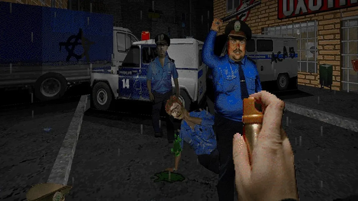 Нечасто можно встретить игру про панков, скинхедов и других подозрительных типов. Sharpshooter3D — это игра про субкультурные нулевые годы, в которой можно стрелять из «Осы» в околофутбольщиков (хулиганская часть фанатов футбола, которые предпочитают участвовать в драках, часто придерживаются ультраправых взглядов — Прим. Ред.), кидаться бутылками в ментов и убивать неонацистов голыми руками. Сделана она, как можно догадаться по названию, выходцами из антифашистской субкультурной среды «для своих» и показывает сильно идеализированную картину уличного насилия как веселого занятия.