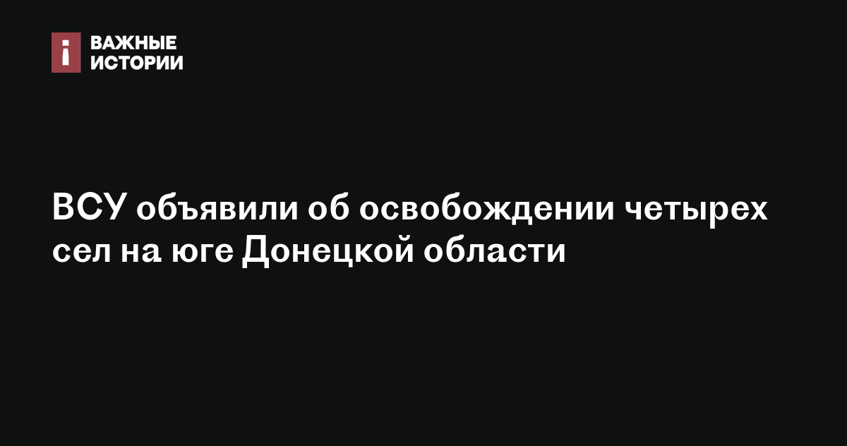 ВСУ объявили об освобождении четырех сел на юге Донецкой области