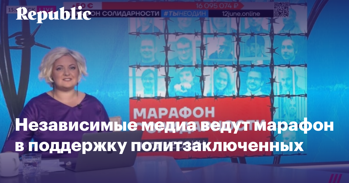 Сегодня независимые российские медиа проводят марафон солидарности с политическими заключенными в РФ, а также со всеми противниками войны, которую Россия ведет против Украины. Марафон начался в 9:00 по московскому времени и будет продолжаться до 22:00. Во время него идет сбор средств в поддержку пострадавших от репрессий в России. На данный момент, после восьми часов марафона, удалось собрать свыше 17 миллионов рублей в качестве пожертвований.