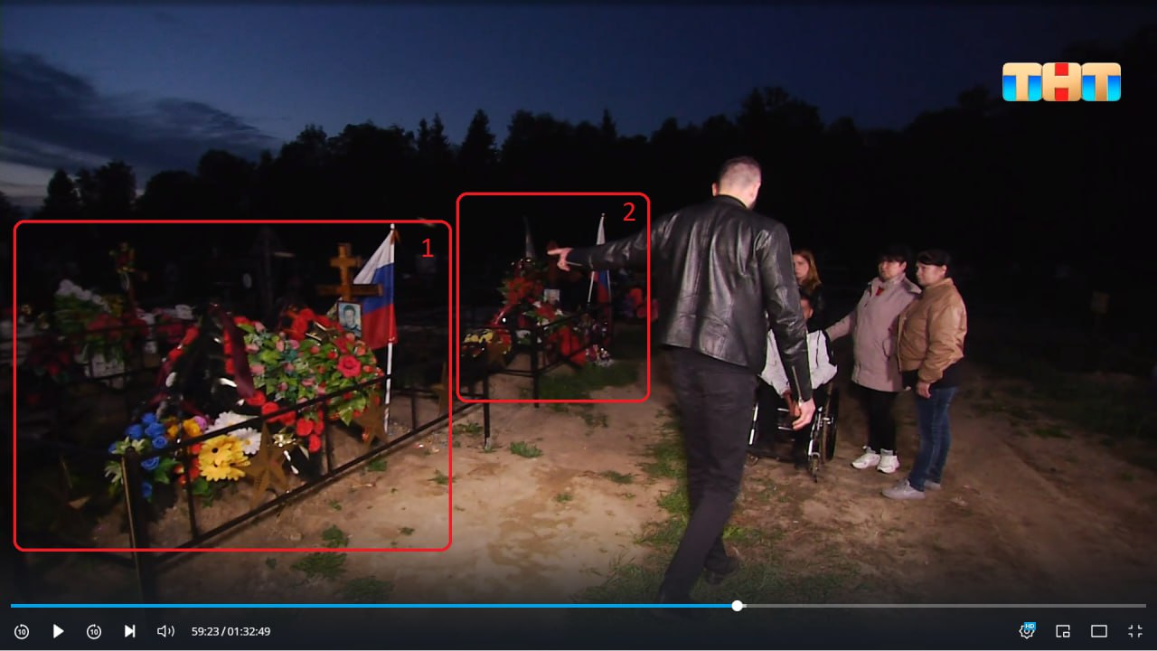 Съёмочная группа «Битвы экстрасенсов» искала «тёмную силу» на кладбище в городе Лакинске Владимирской области, но случайно наткнулась на «Аллею славы», где похоронены местные жители, погибшие на войне с Украиной.