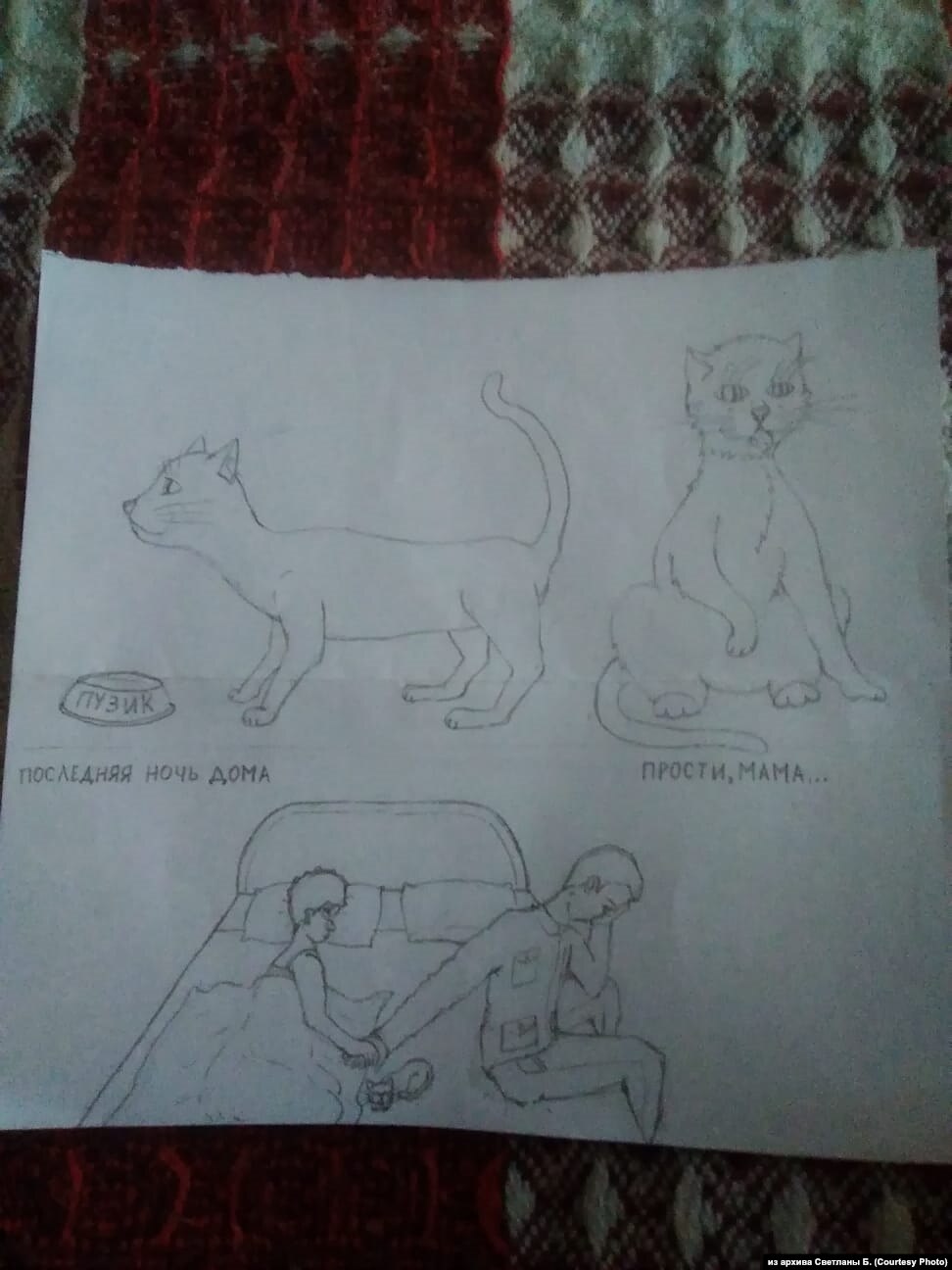 – Сын шлет нам из СИЗО свои рисунки, в том числе – своих котов там рисует, мечтает: "Я так хочу вернуться к своим котам, ничего больше не хочу", – говорит мать Андрея Светлана.