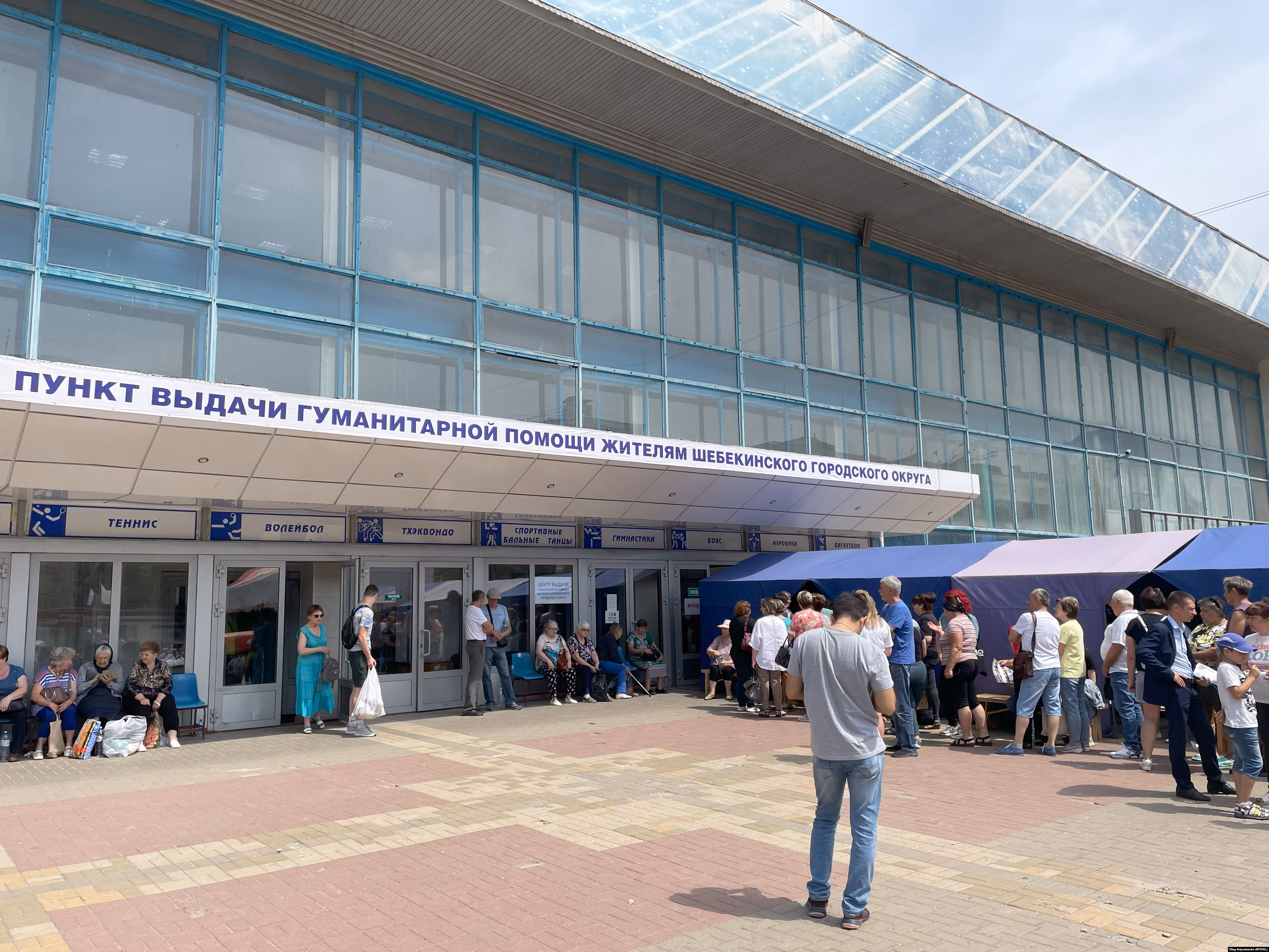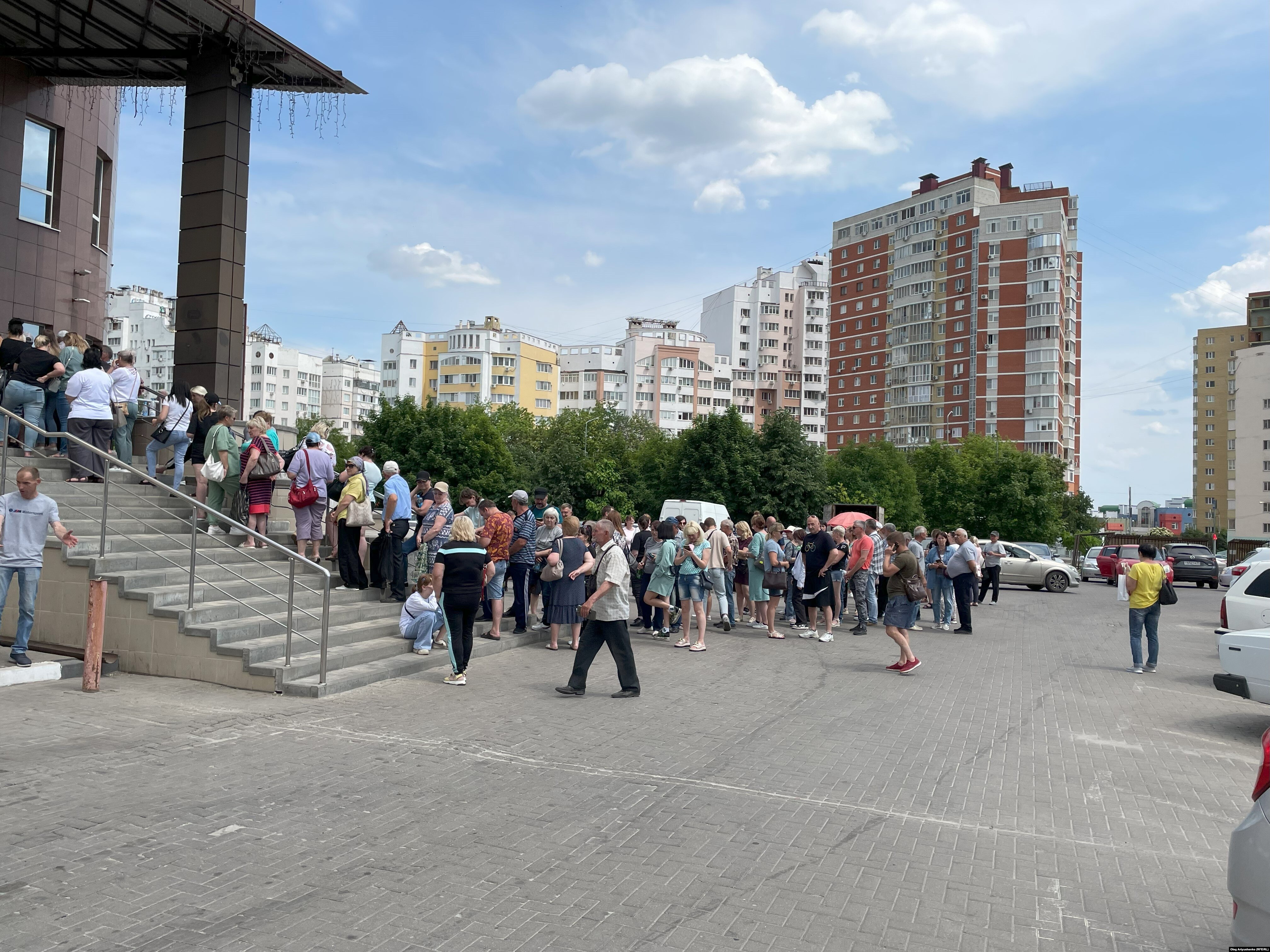 – Как в три часа началась эта стрельба, так сразу и уехали. Я живу у дочки. Мы тут уже были, третий раз приходим получать. Думаю, пару часов еще ждать, – говорит тучный усатый человек в майке и шортах.