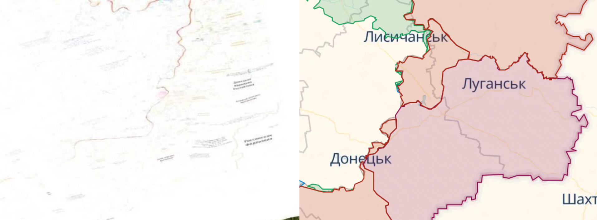 Детали. Опубликованная фотография обработана таким образом, что на ней практически не видны населенные пункты. Однако общие очертания понятны. На карте Донецкая народная республика обозначена как регион за пределами Российской Федерации. Так было до 30 сентября, когда Владимир Путин включил ДНР в состав России.