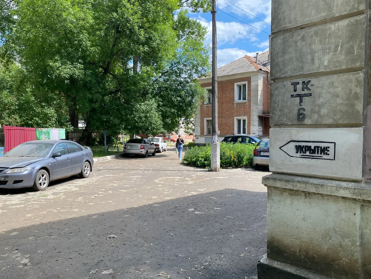 Иду мимо подъездов, на стенах которых размещены указатели к укрытиям. Из багажника припаркованной машины парень выгружает канистры с водой. Хромая на одну ногу и матерясь, вносит их в одно из таких укрытий — подвал жилого дома.