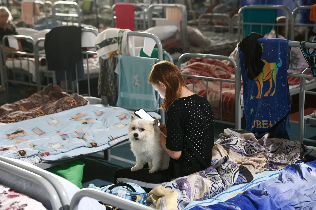 На базе учебно-спортивного комплекса Светланы Хоркиной находится самый большой пункт временного размещения Белгорода. Здесь на койках в огромном спортивном зале размещены сотни людей. Те, кому не к кому ехать. Те, кто сам не может о себе позаботиться. Одинокие старики.