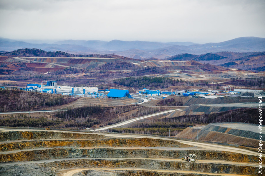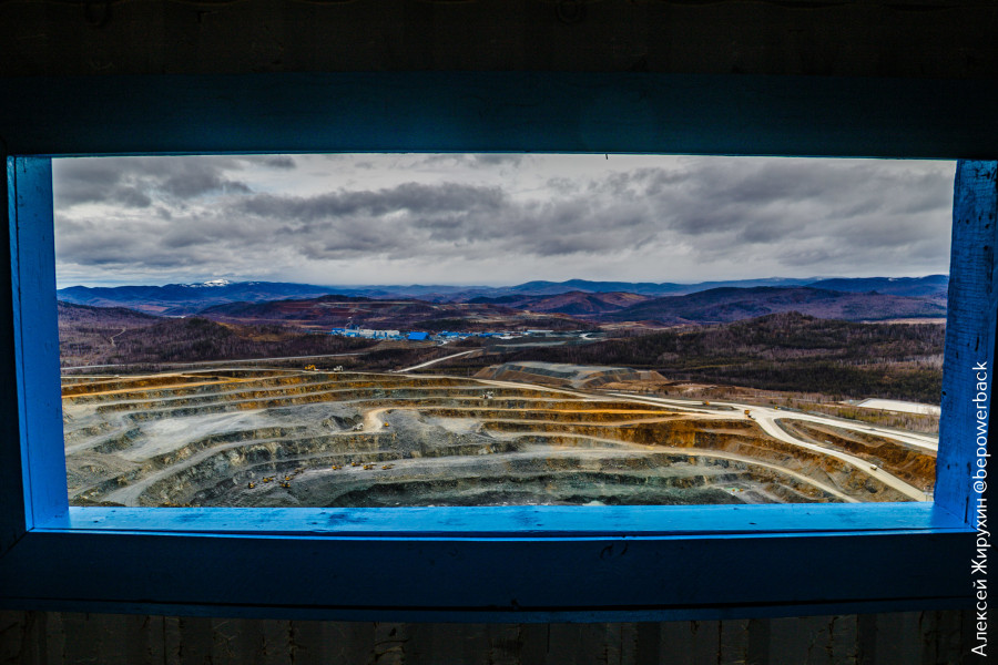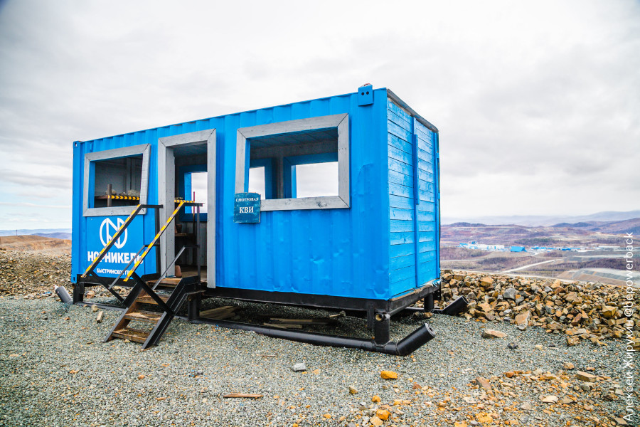 Еще он служит одновременно в качестве смотровой на один из карьеров ГОКа - Верхне-Ильдиканский. Всего их тут 4, кстати, два из которых (Верхне-Ильдиканский и Быстринский-2) будут отрабатываться в течение всего периода эксплуатации ГОКа, а два других (Малый Медный Чайник и Южно-Родственный) введут в эксплуатацию позже.