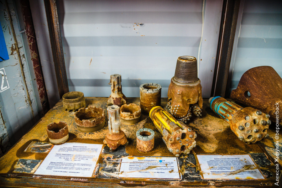 Ну а музей небольшой не только по размерам, но и наполнению. Здесь можно увидеть образцы руд, которые добываются на этом карьере, а также отработанные коронки буровых установок, которые здесь применяются.