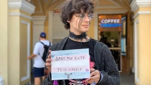 В Санкт-Петербурге задержали ЛГБТ-активиста Александра Синько. Он проводил пикет против закона о запрете трансгендерного перехода