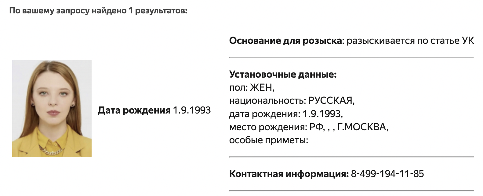 МВД объявило в федеральный розыск бывшую муниципальную депутатку Анастасию Брюханову, против которой ранее возбудили дело о военных «фейках» (часть 1 статьи 207.3 УК). Внимание на карточку розыска на сайте ведомства обратила «Медиазона».