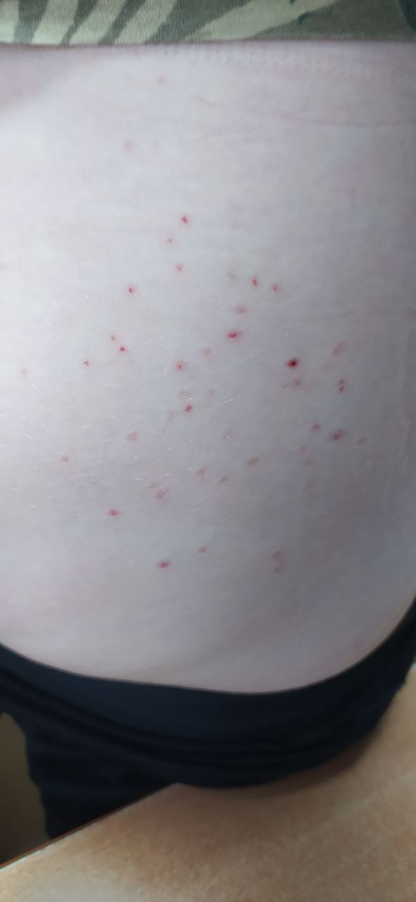 Когда конвоиры отвлеклись и отошли, женщинам удалось поговорить с Березиковым. Он успел рассказать, что пока те искали его в отделе № 4, оперативники вывезли его за город и пытали там электрошокером. Адвокат сделала фотографию — на спине действительно видны множественные красные точки, характерные для ударов электрошокером.