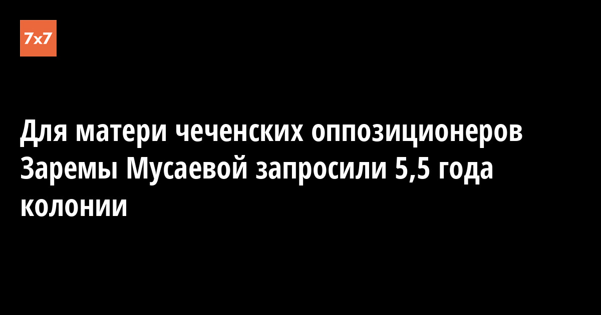 Прокурор запросил 5,5 года колонии для Заремы Мусаевой, матери двух чеченских оппозиционеров. В январе 2022 года силовики насильно увезли ее из Нижнего Новгорода в Чечню как свидетеля по уголовному делу о мошенничестве, а потом возбудили против нее дело о нападении на полицейского. Об этом 15 июня сообщил телеграм-канал «Команда против пыток».